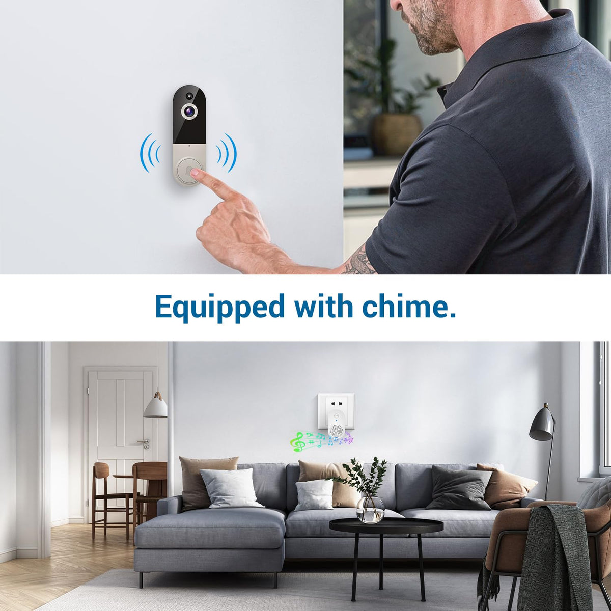 1080P Video Doorbell Camera Wireless Wi-Fi Cam With Two Way Talk, Ai Motion Detection, Night Vison, Cloud Storage.