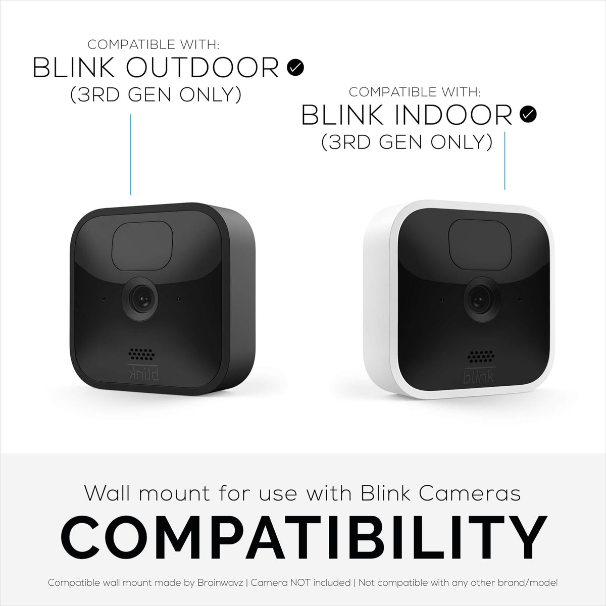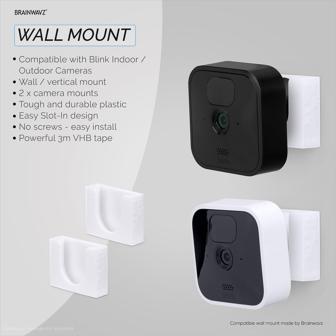A Slim And Sleek Wall Mount Pack For Your Blink Security System. Mount Your Cameras,, On A Wall, Shelf Or Other Flat Surface And Ensure They Are Always In The Prime Location For The Best Performance.The Wall Mounts Are Lightweight With A Simple Slide-In Design To Allow For Quick And Easy Placement Of Your Devices, And They Come As A Multi Pack, So There Are Enough For All Your Cameras.Compatible With The Blink Indoor/Outdoor Camera System Only, Will Not Work With Any Other Model Or Brand.