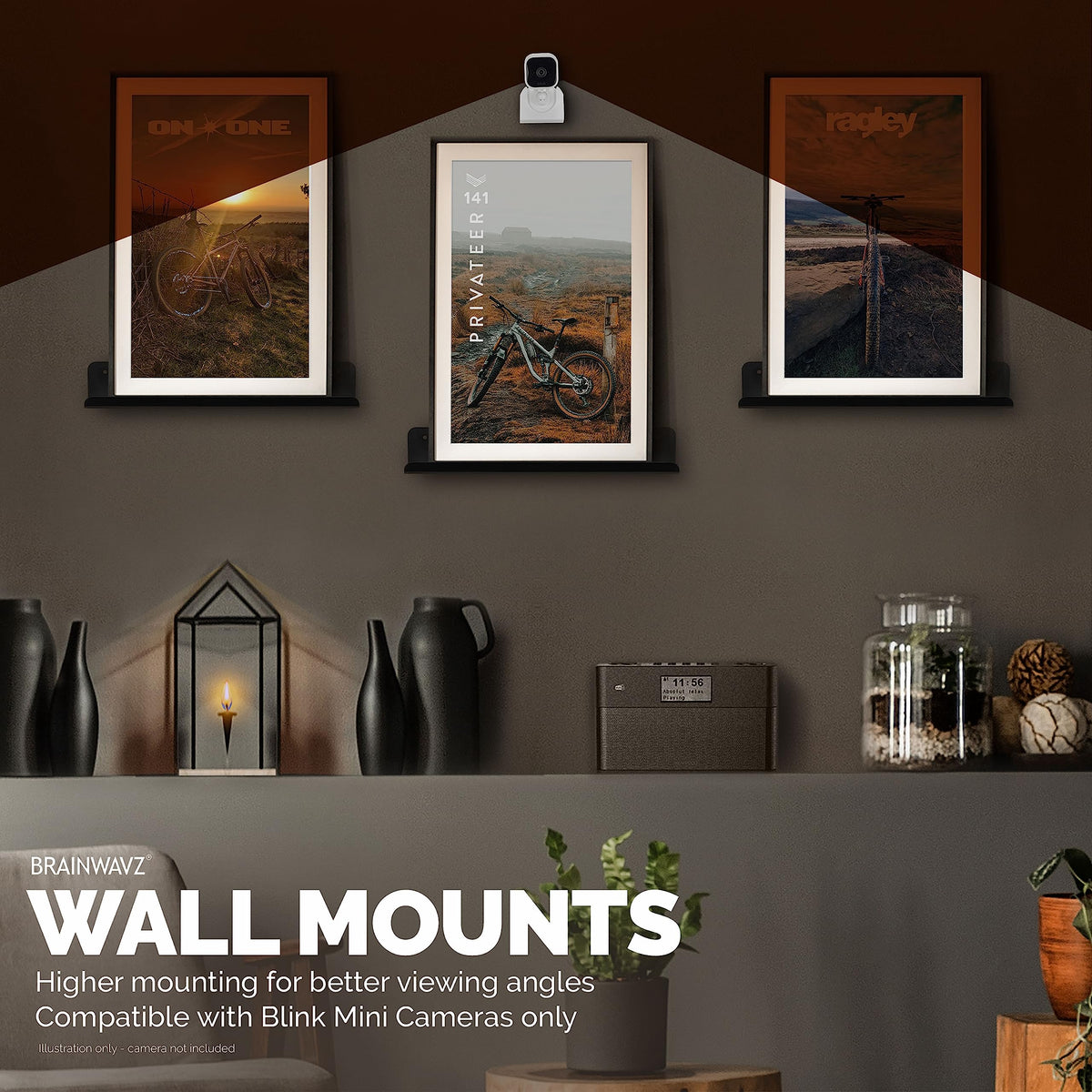 Brainwavz Adhesive Wall Mount For Blink Mini Camera, 2 Pack, No Hassle Holder, Strong 3M Vhb Tape, No Screws, No Mess Install, B