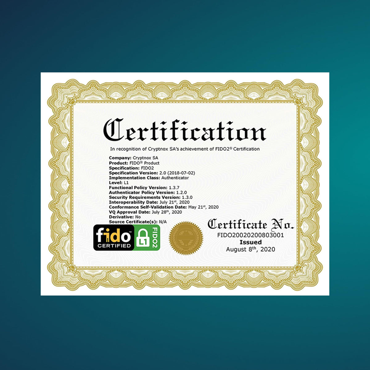 The Cryptnox Fido Card Is A Certified Fido2 Authenticator That Enables Secure Website Authentication As An Additional Physical Second Factor (2Fa) Or Simply Without Passwords (Resident Login) If The Site Allows. No Software Installation Is Required. It Can Be Used With Nfc On The Android Mobile Operating System, As Well As Microsoft Windows Desktop With A Smartcard Reader. On Mobile Phones, Correct Positioning At The Back Is Required - Either In The Middle Or At The Very Top - Depending On Your Device Model. The Card Is Natively Supported Out Of The Box By Most Browsers. Websites Supporting The Fido Standard Include Google, Facebook, Twitter, Dropbox, Outlook, And Many Others. Current Sites Mostly Allow Usage Of The Cryptnox Fido Card As 2Fa, With Direct Passwordless Login (Resident Login) Being Less Commonly Enabled. The Card Registration Is Specific To Each Online Account, And The Procedure Differs From Site To Site. Look For Specific Instructions On Their Respective Support Pages. Cryptnox Fido Cards Can Be Natively Used As A Security Key With Ios Without Additional Software Or Drivers (A Minimum Of Two Cards Is Required). On Microsoft Windows, Cryptnox Fido Card Authentication Is Available With Microsoft 365 Business Premium And A Card Reader. Specifications: Protocols Supported Are Fido2 (Ctap2) And U2F (Ctap1). It Communicates Via Nfc (Iso 14443) Or Contact, With A Compatible Smartcard Reader (Iso 7816). It Is Fido2 Level 1 Certified As Per The Fido Alliance Certification Program. The Card Chipset And Cryptographic Module Are Common Criteria Eal6+ And Fips 140-2 Level 3 Certified. Cryptnox Is A Member Of The Fido Alliance. Configure Your Fido2 Card With Cryptnox Fido2 Card Manager Mobile Application (Ios Only). Easily Set, Test And Change Your Pin, Or Reset Your Card To Factory Default If Required.