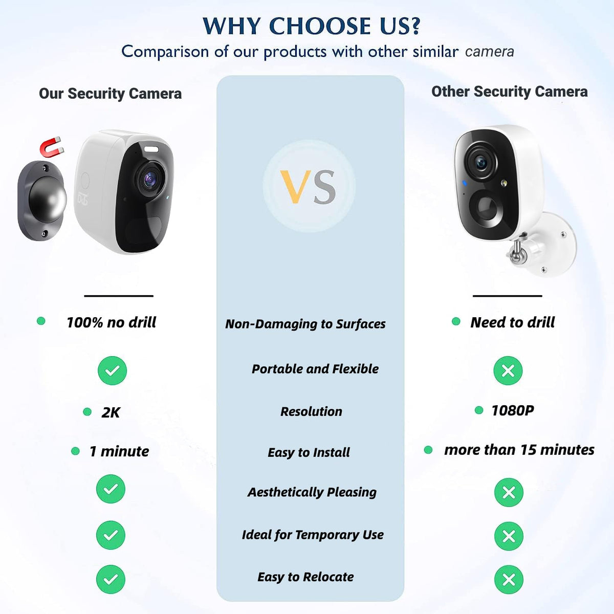 Dct Security Cameras Wireless Outdoor Magnetic: Battery Powered Wifi Camera 2K Color Night Vision House Cameras Outside Motion D