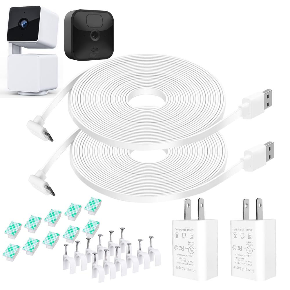 Dianmu Power Extension Cable With Adapter, Weatherproof Charging Cord Charger For Wyze Cam Pan V3 Indoor/Outdoor Smart Home Security Camera And Blink Outdoor (3Rd Gen) Camera About Our Flat Extension Cable: L-Shaped 90 Degree Power Cable Is Specifically Designed For Wyze Cam Pan V3 Cameras The Charging Adapter Uses Smart Ic Technology To Ensure The Safety Of Device Charging Extra Adhesive Clips Can Be Used In Smooth Places That Are Not Suitable For Nails Flat Extension Cable Can Be Easier To Pass Through Small Gapes Meet Awg (American Wire Gauge) Standard Compatible With: Wyze Cam Pan V3 Indoor/Outdoor Smart Home Security Camera Blink Outdoor (3Rd Gen) Camera Not Compatible With: Other Models Of Cameras Package Include: 2 X 26Ft Charging Cable With Micro Usb Connector 2 X Dc 5V1A Adapter 12 X Wire Clips Cable Nails 10 X Adhesive Cable Clips Note: Package Not Include Any Camera.