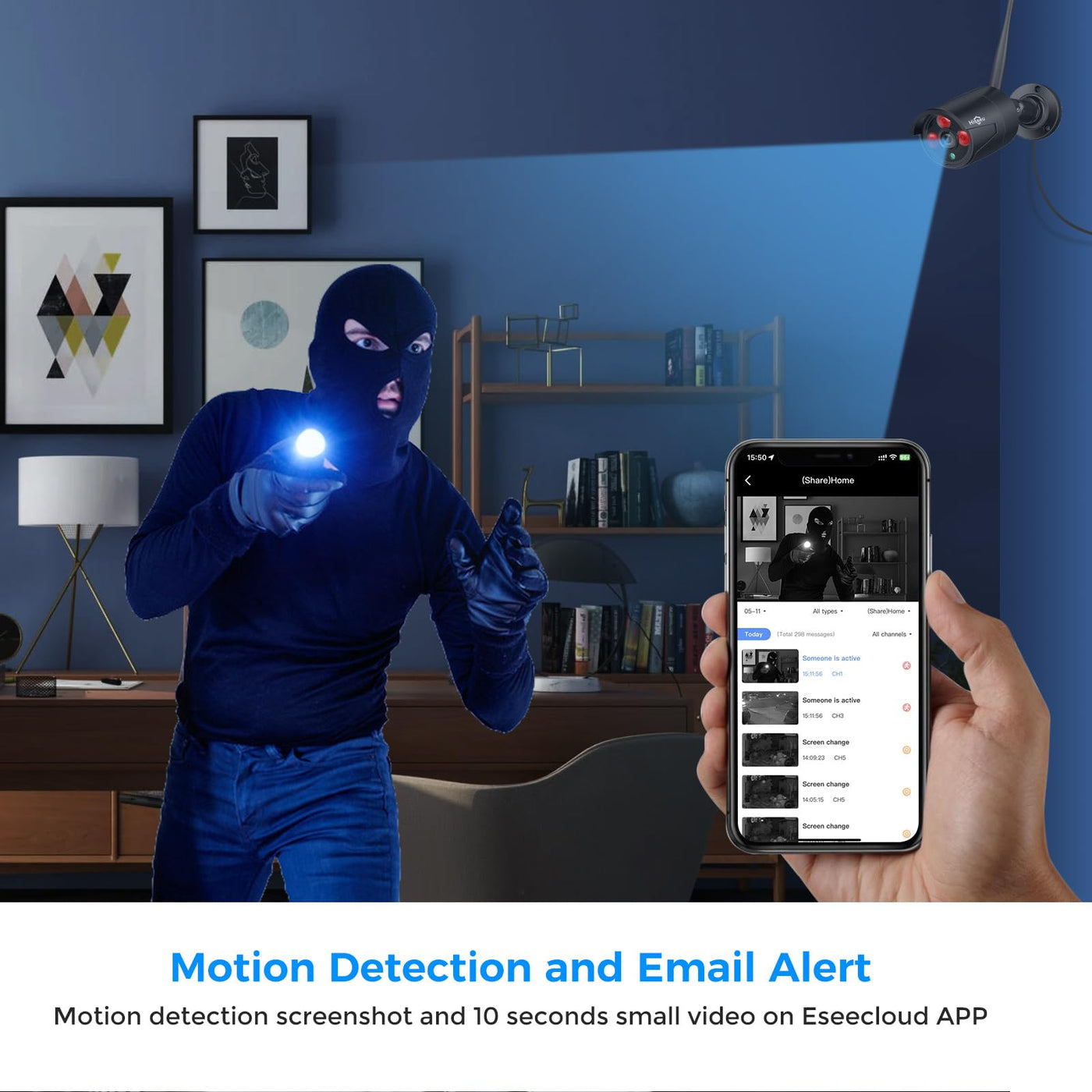 Color:4Pcs 1296 Cams + 8Ch 5Mp Nvr+ 10.1'Monitor With 1Tb Hard Drive Hiseeu Kindly Notice: Notice: ?Wireless System Here Means Cameras Will Auto-Pair To Nvr By Built-In Wifi Without Any Video Cable Between Them. Each Camera Has An Included Power Supply With 10 Feet Of Power Cord. ?Nvr Should Be Hook Up Into Router With Ethernet Cable If You Need Remote Access. ?1T Surveillance Hard Drive Is Already Pre-Installed In The System For Around 45 Days Of 4Pcs 5Mp Cameras' Continuous Recording, Longer Recording Times Available With The Use Of Motion Detection Mode. When The Hard Drive Is Full, It Will Overwrite Automatically. ?These Cameras Are Without Audio Function. ?Please Read The Quick User Guide And Test Cameras' Wifi Signal Before Installation. Nvr Features: Support Video Preview/Recording/Playback/Usb Backup Support Android/Ios/Pc Remote View < Support 1Sata * 4Tb(Max) Hard Drive 1* Hdmi, 1* Usb Interface Power Supply Input: Dc12V-2A Power Dissipation: ?5W Camera Features: 1.Image Sensor: 1/3�Progressive Scan Sensor 2.Resolution: 1920 X 1080P 3.Lens: 3.6Mm 4.Day&Night: Auto / Color / Bw 5.Waterproof: Yes, Ip66 Standard 6.Power Supply Input: Dc12V-1A 7.Power : =6W Packing List: * 1 X 16Ch 5Mp Nvr With 10.1' Lcd Monitor Pre-Installed 1Tb Surveillance Hard Drive * 1 X 3.3 Feet Power Supply (12V-2A) For Nvr * 4 X 2304*1296 Ipc * 4 X 10 Feet Power Supply (12V-1A) For Cameras * 4 X Screw Bag(For Camera) * 4 X Camera Antenna * 1 X User Manual * 1 X Usb Mouse * 1 X 3.3 Feet Network Cable * 2 X Surveillance Warning Note If Camera Not Work, Please Take It Close To The Nvr, Normally Due To Wifi Signal Not Good, Will Cause Camera Lost Connection With Nvr