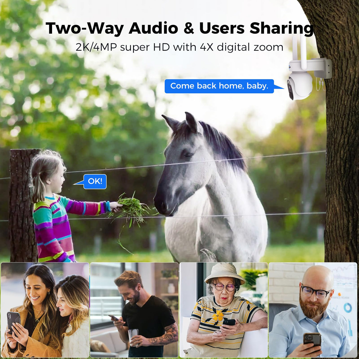 Hiseeu 4G Cellular Security Cameras Wireless Outdoor, No Wifi Security Camera, 4G Solar Powered Lte Security Camera, 360�Ptz Wireless Security Camera Without Wifi, 2K Night Vision, 2-Way Talk, 20000Mah Battery, Include 64G Sd, Built-In 4G Sim Card Lte Security Camera