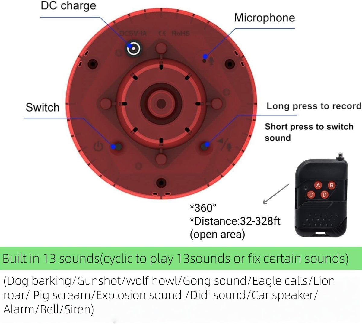 Hulppre Solar Outdoor Motion Sensor Alarm-Dog Barking&Gunshot Sound,130Db Loud Noise Maker,Support Recording,13 Kinds Of Sound S