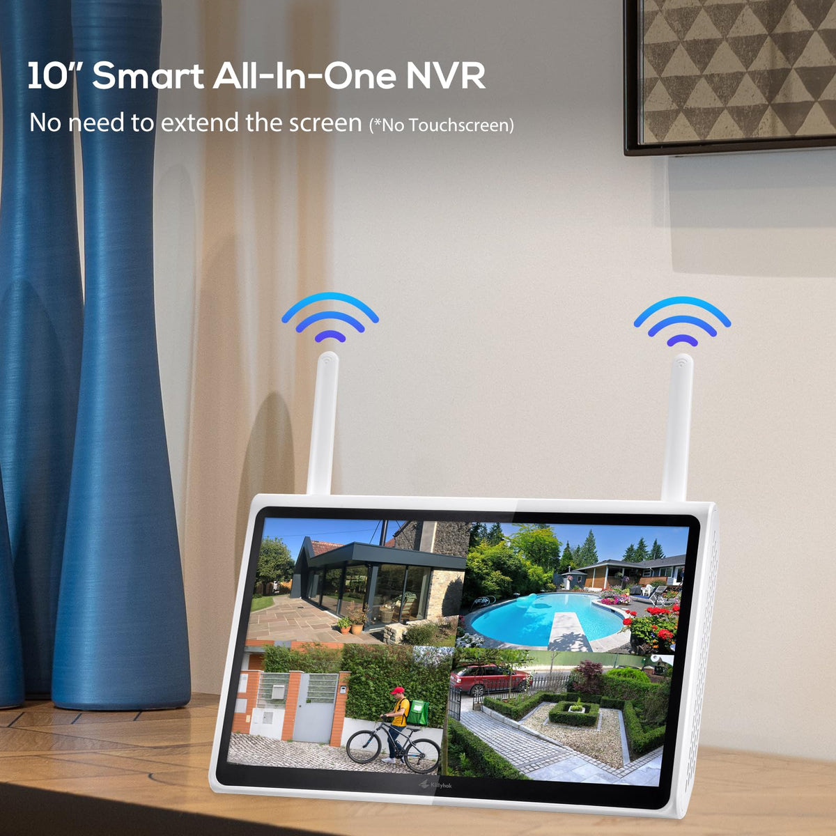 Q: What features does the 10CH NVR offer?A: The 10CH NVR provides a comprehensive home surveillance system with a 10-inch IPS HD screen for easy monitoring. It supports local storage, allowing you to save footage without any hidden fees.