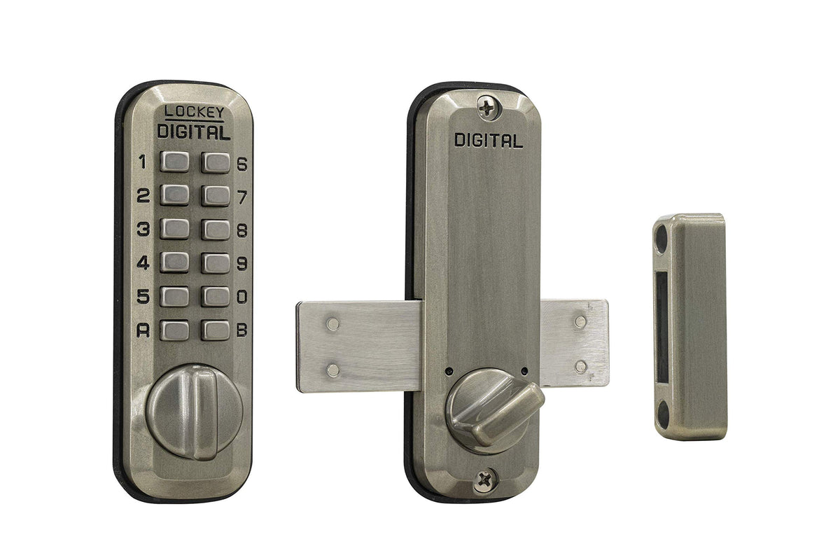 Digital Door Lock, M220 Mechanical, Keyless, Surface Mount Deadbolt Lock With Reversible Bar In Satin Nickel