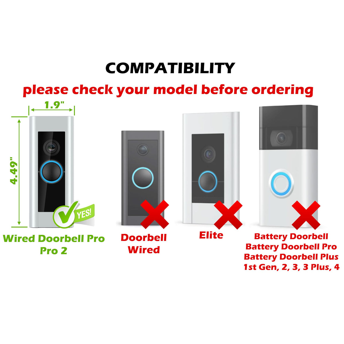 Q: Is this cover compatible with all Ring Doorbell models?A: No, this cover is specifically designed for RingPro and RingPro 2 models. It is not compatible with other Ring Doorbell models, such as Battery Pro. Please check our other listings for compatible covers.