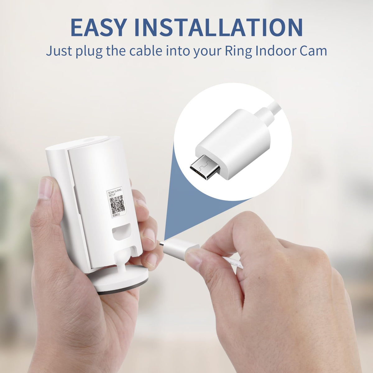 Q: How easy is it to install the Paodekua Charging Cable?A: Installation is very easy. Simply connect the cable to your Ring Indoor Cam (2nd Gen), and it will fit securely. The setup takes just a few minutes.