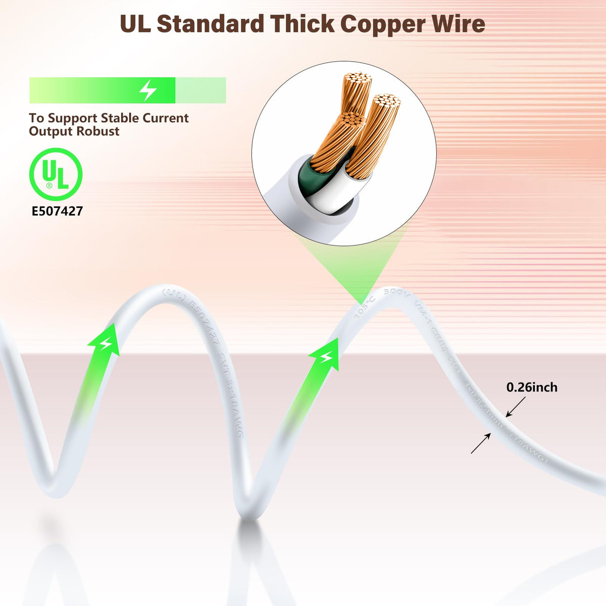 Q: What makes this power cable safer for charging my floodlight camera?A: This power cable is UL CERTIFIED, meaning it meets strict safety standards for electrical devices. It supports stable current output, ensuring safer charging for your Floodlight Cam Wired Pro or Plus, and allows for 24 hours of continuous power.