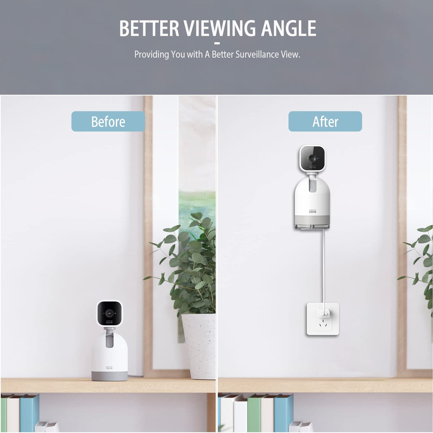 Q: Can I adjust the angle of the camera once it is mounted?A: Yes, the PUUUCI Wall Mount allows for flexible mounting positions and heights, enabling you to adjust the angle of your Blink Mini Pan-Tilt Camera for the best surveillance view.