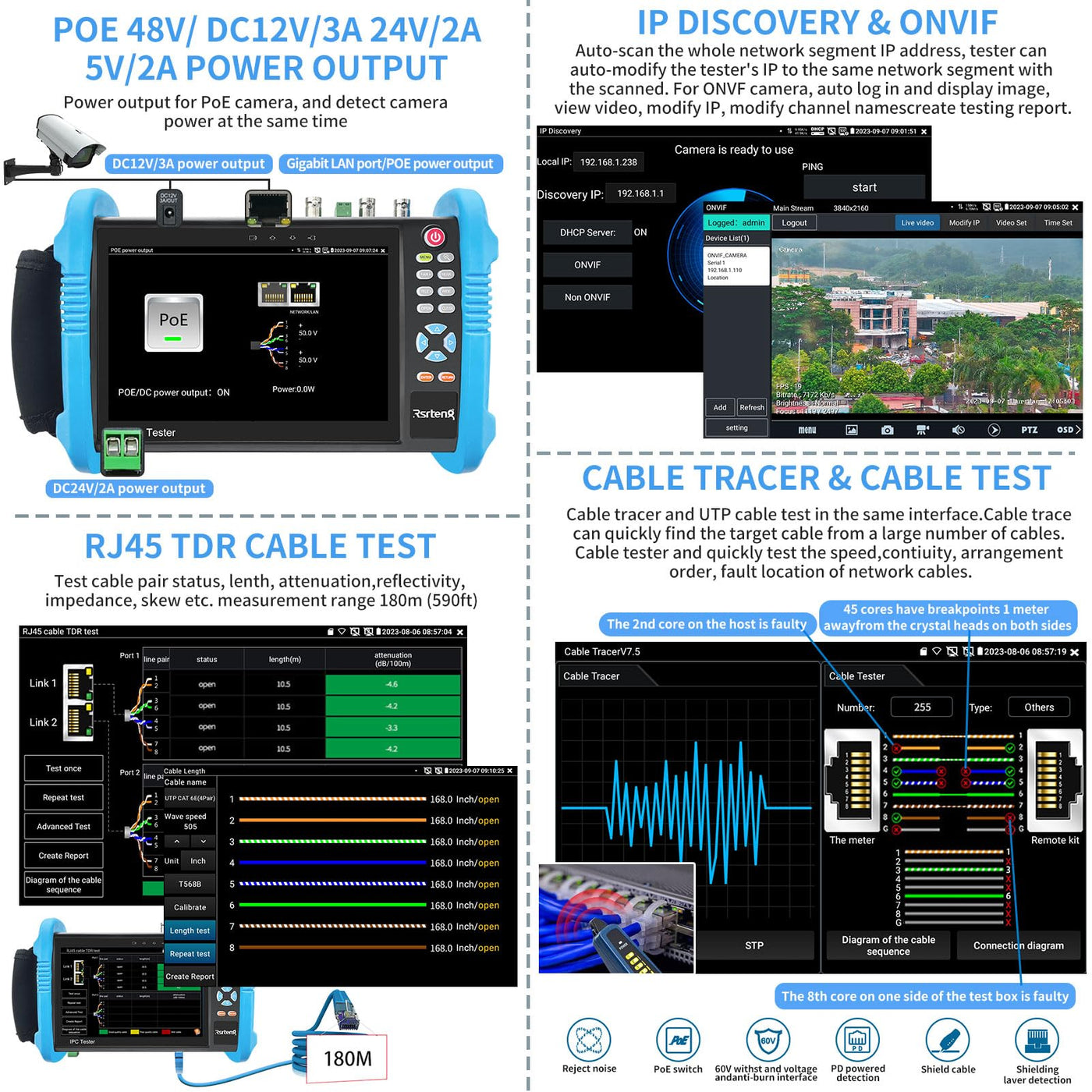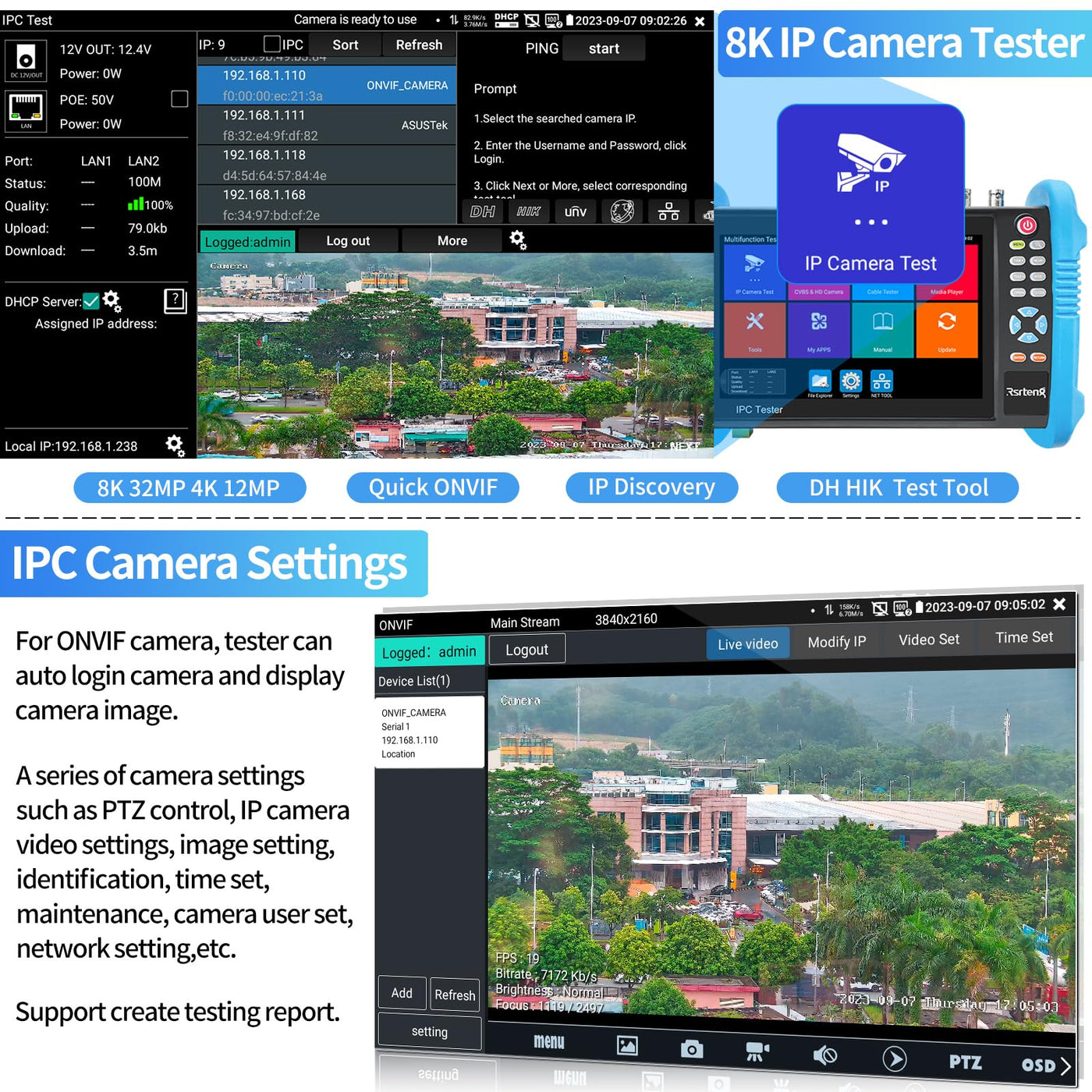 Rsrteng Cctv Tester,Ipc-9800Cadhs Pro 8K 32Mp 4K 12Mp Ip Camera Tester With Cable Tracer 8Mp Cvi Tvi Ahd Sdi Cvbs Coaxial Camera