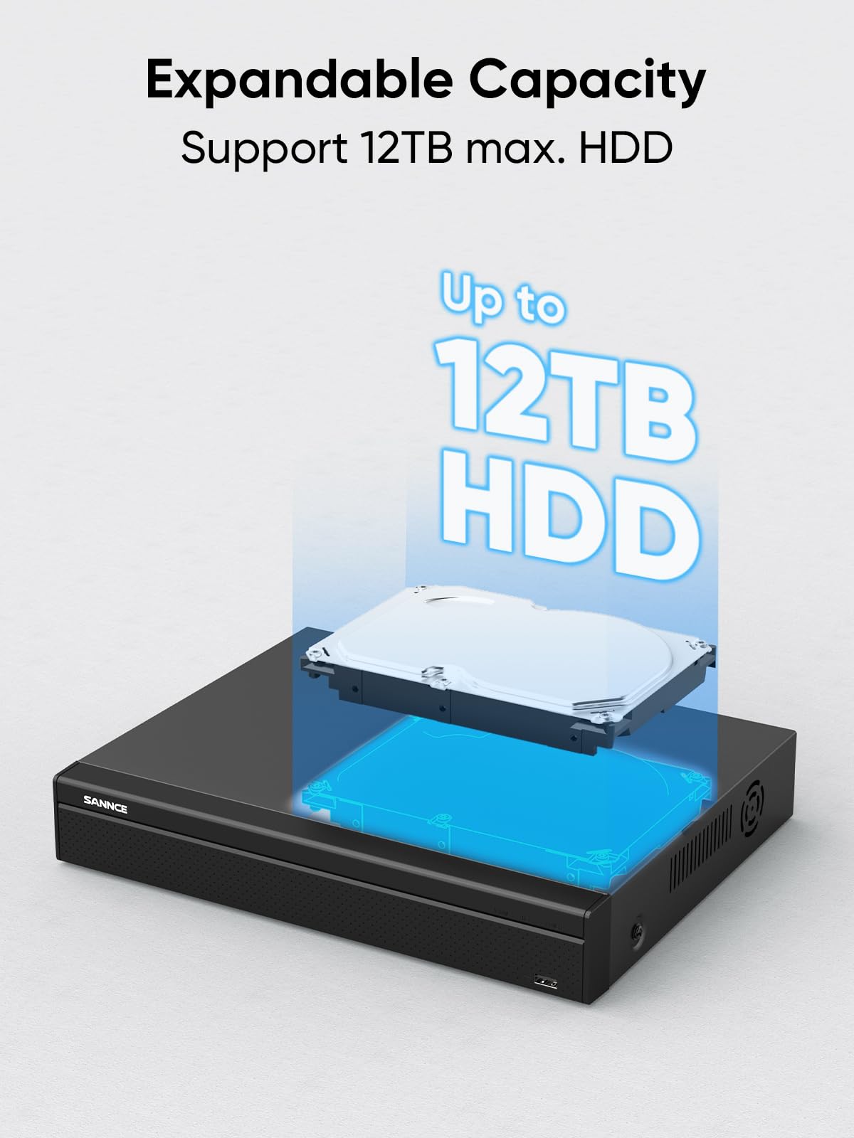 Sannce 4K Poe Cctv Nvr 16 Channel Security Network Video Recorder, Supports 8Mp/5Mp/4Mp/1080P Hd Ip Cams 24/7 Surveillance Recording Home Security Camera System, Motion/Vehicle Detection, No Hdd