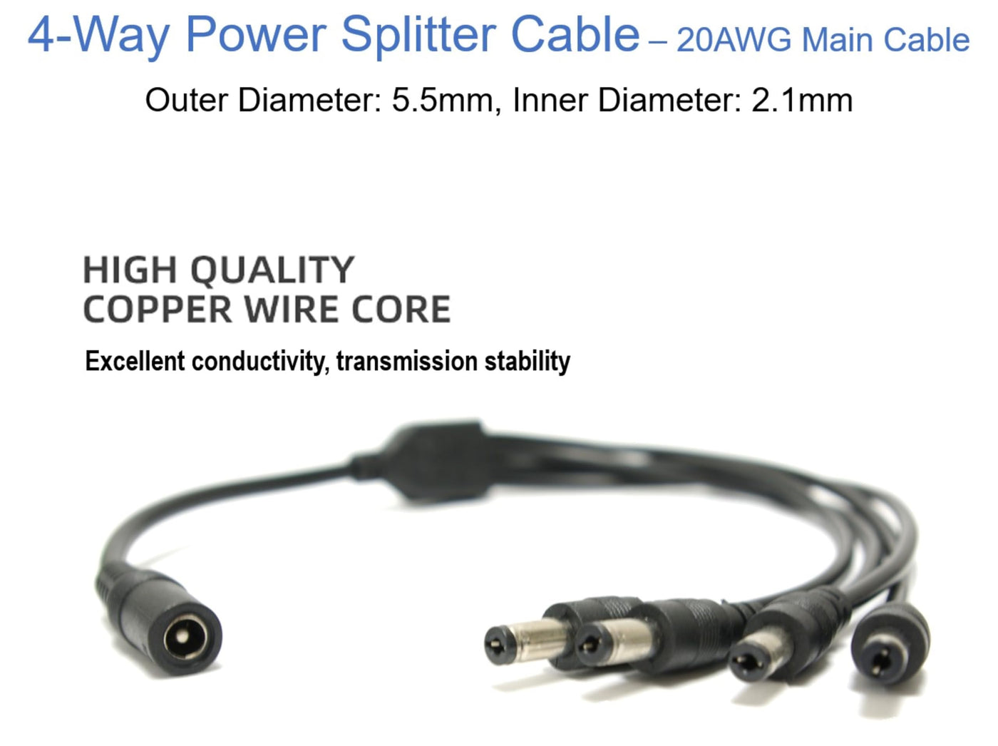 The Soltech Power Splitter Cable Is A Great Way To Save Money And Time When Installing Security Cameras &Nbsp;? Soltech'S 20 Awg(Main) Power Splitter Cable Offers Superior Conductivity, Resistivity, And Transmission Stability Compared To 22 Awg And 24 Awg Cables Commonly Found On The Market. This High-Quality Cable Is Made With Thick, Pure Copper Conductors That Have A Lower Resistivity And Higher Conductivity Than Other Materials. The Cable Also Features A Sturdy Construction That Helps To Ensure Its Long-Lasting Performance. As A Result, Soltech'S Power Splitter Cable Is The Ideal Choice For Applications Where High-Performance And Reliability Are Essential.? The Cable Has A Connector Diameter Of 5.5Mm And An Inner Diameter Of 2.1Mm, Making It Compatible With A Variety Of Cameras? This Cable Has A Length Of 15 Inches, Making It Easy To Reach Most Cameras. The Cable Has 1 Female Connector And 4 Male Connectors, Making It Easy To Connect To All Of Your Cameras.? The Cable Is Also Designed With A Clinched &Amp; Secure Design That Ensures A Tight Fit Between The Connector And The Cable.? Soltech 4-Way Power Splitter Cable Is A Convenient And Cost-Effective Way To Power Up 4 Cameras With 1 Power Adapter. This Cable Is Made With High-Quality Materials And Is Designed To Last.&Nbsp;? It Is Also Easy To Use, Simply Plug The Power Adapter Into The Splitter Cable And Then Connect The Splitter Cable To Each Camera. The Soltech 4-Way Power Splitter Cable Is A Great Way To Save Money And Time When Installing Security Cameras.&Nbsp;