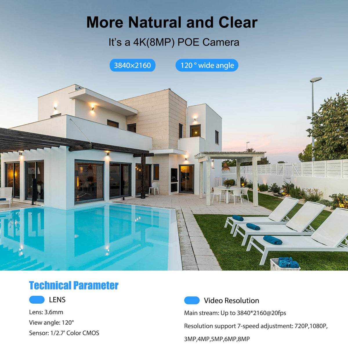 Sv3C 4K Poe Ip Camera Outdoor, 8Mp Poe Security Camera With 120Wide Angle, Smart Motion Detection, Ir/Color Night Vision, Two Wa