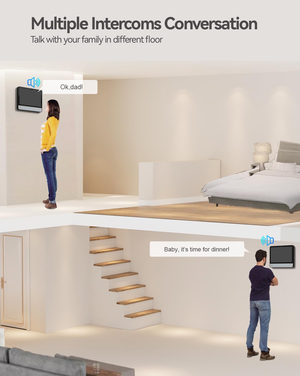 Tmezon Wired Video Intercom System, 7 Inch Ring Video Doorbell With Night Vision Support Remote Unlock, Dual Way Intercom For Villa House Office Apartment With 1 Camera And 2 Monitor