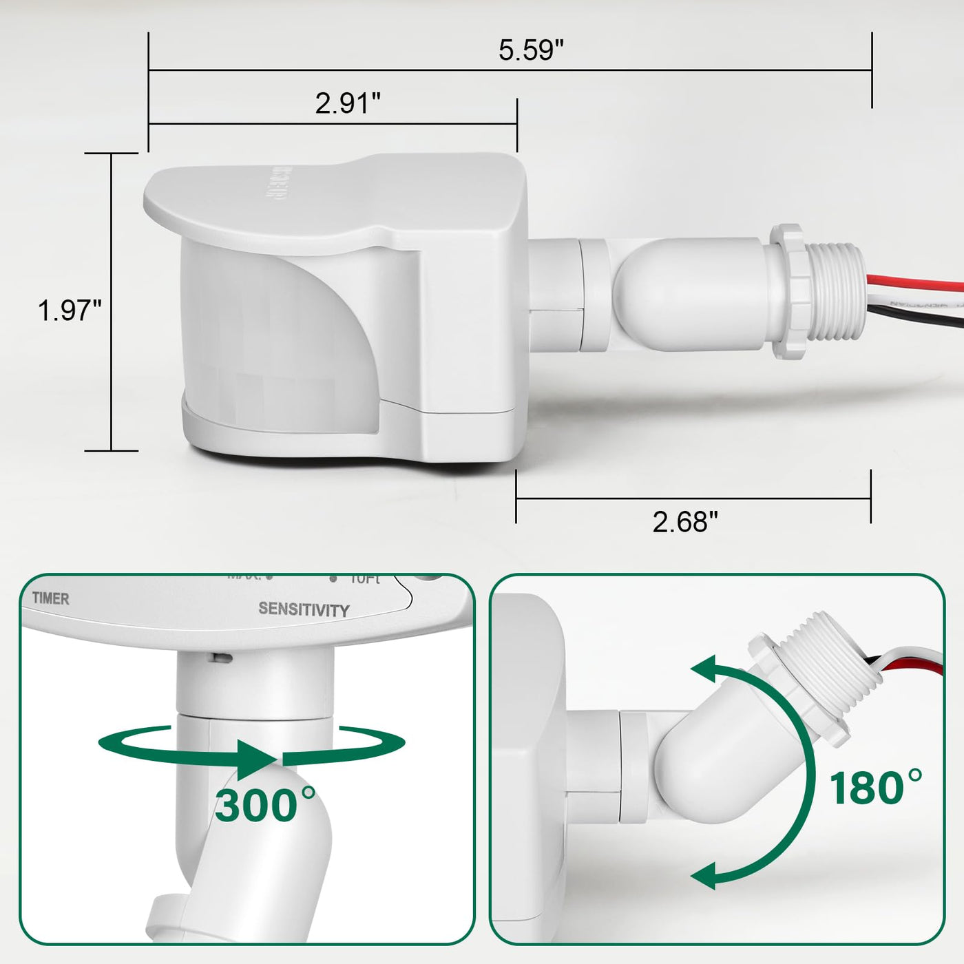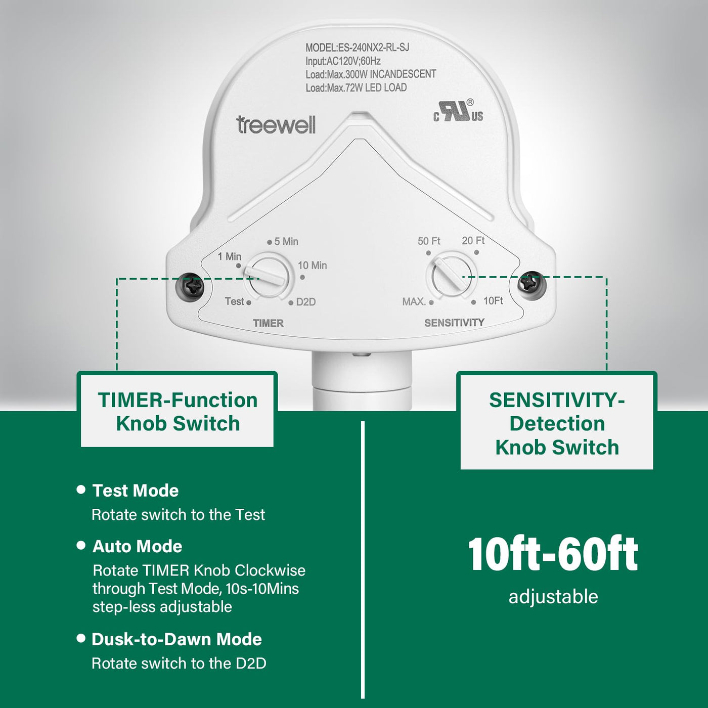 Treewell 2 Pack 240 Degree Replacement Motion Detector, Adjustable Delay Time & Detection Sensitivity Up To 60 Feet Range, 3 Wor