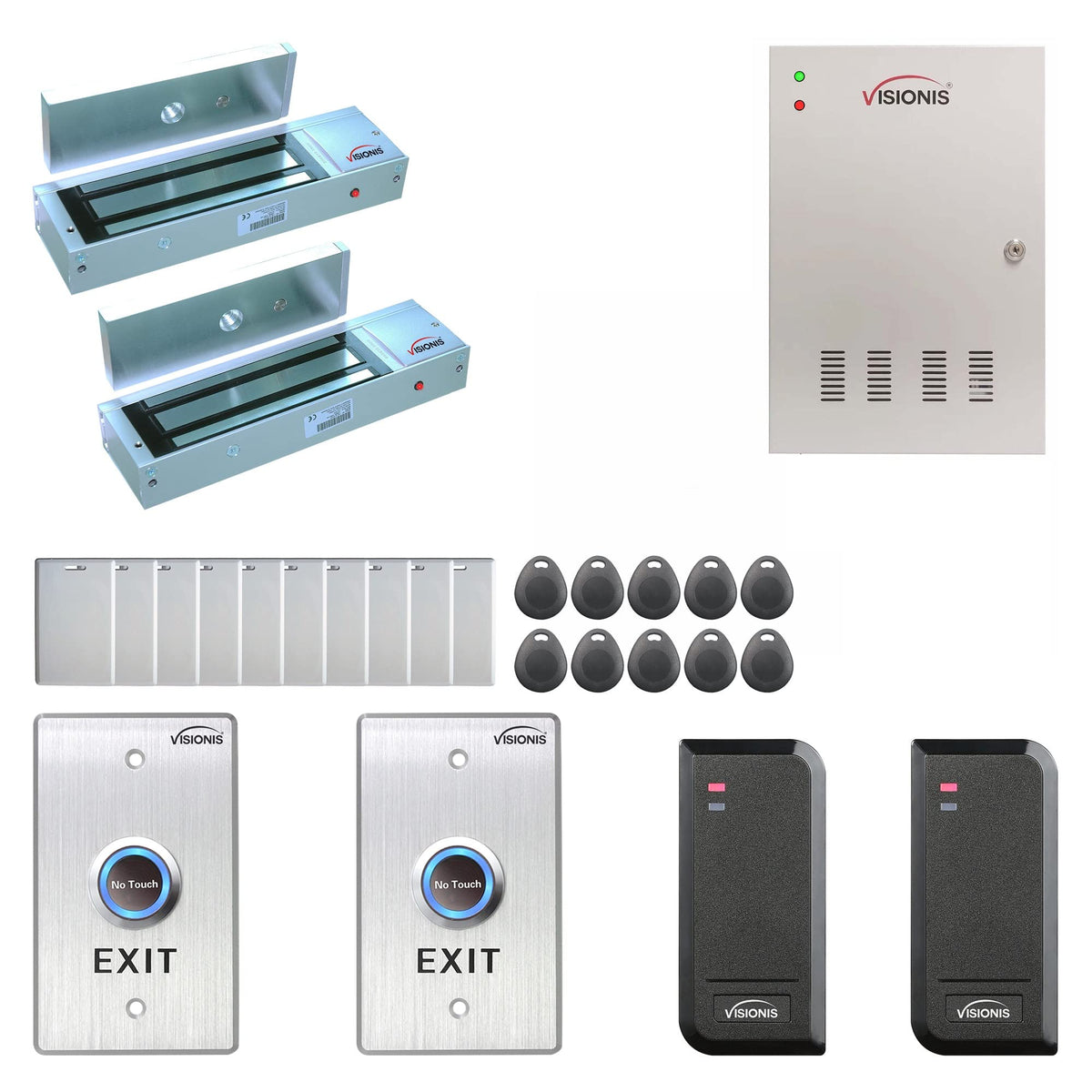 Visionis Fpc 6135 Two Doors Access Control For Outswing Electric 1200Lbs Maglock Time Attendance Tcp/Ip Wiegand Controller Box, Black Indoor/Outdoor Card Reader, Software + 20,000 Users Kit