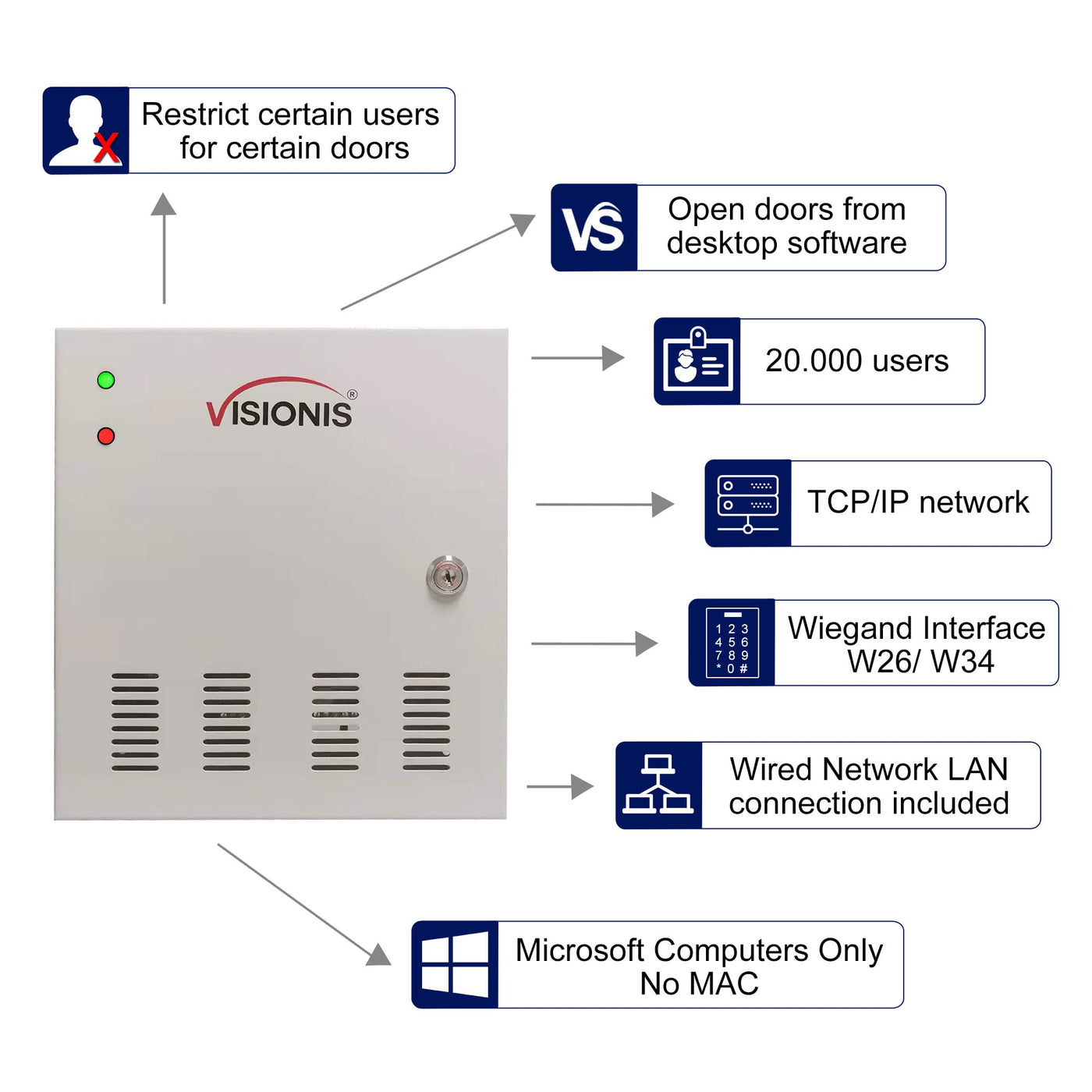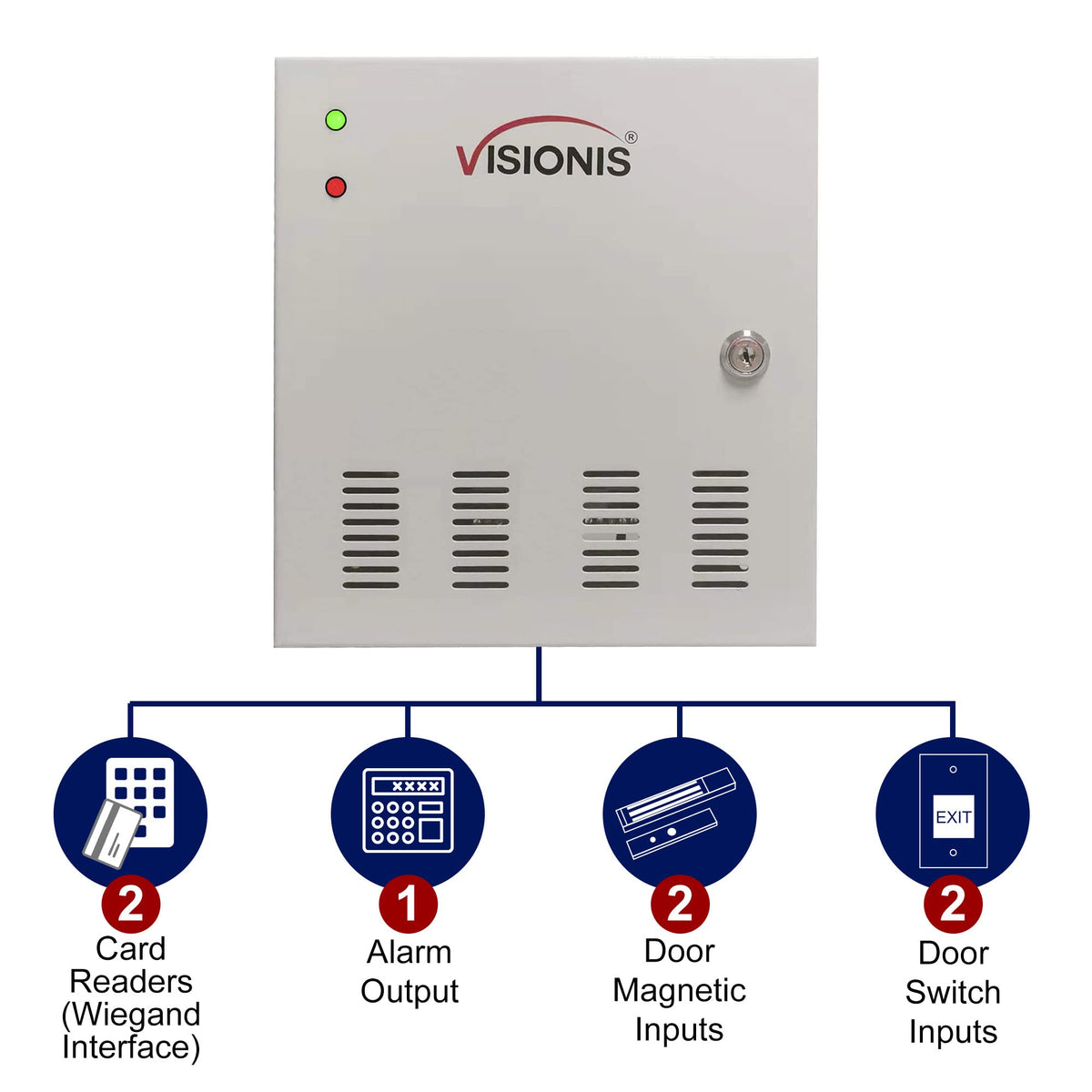 Visionis Vs Axess 2Etl Version 2 Two Door Network Access Control System Panel Controller Board And Power Supply Cabinet For 2 Doors Security With Tcp/Ip Wiegand And Desktop Software 20,000 Users