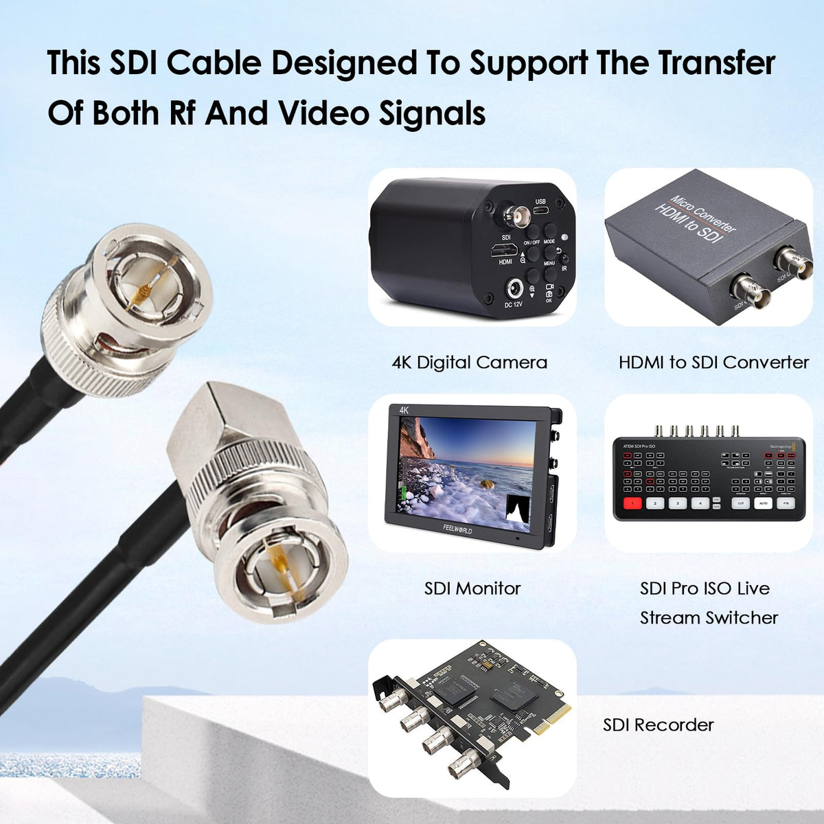 Q: Can I use this cable for 4K video transmission?A: Yes, the XRDS -RF SDI Cable supports 4K video transmission, ensuring that your high-definition video signals are transmitted with clarity and minimal degradation.