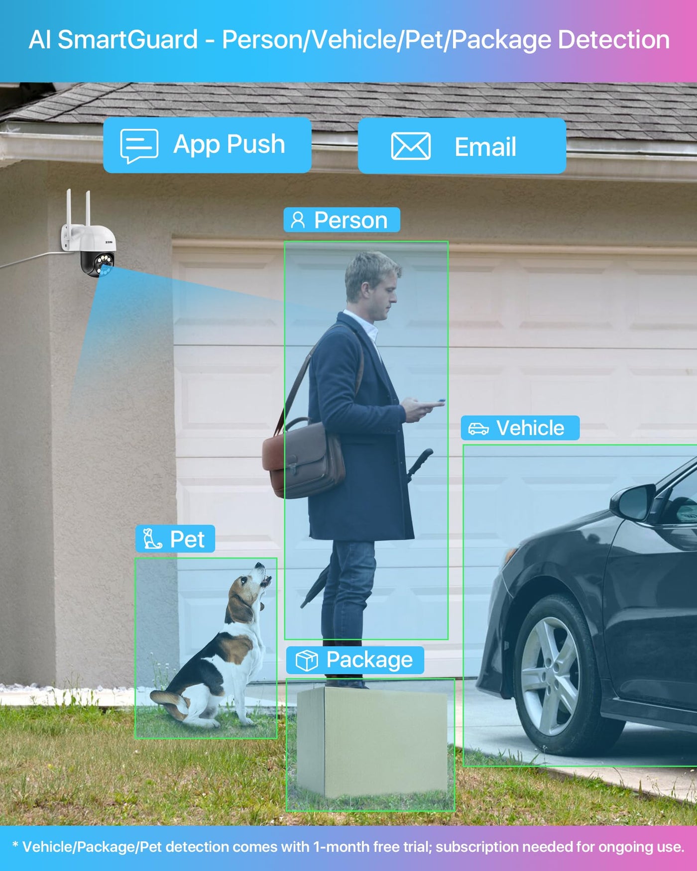 Zosi 2K Wifi Pan/Tilt Security Camera, 3Mp Plug In Outdoor Home Pt Camera, Auto Track Human, 2 Way Audio, Smart Motion Detection