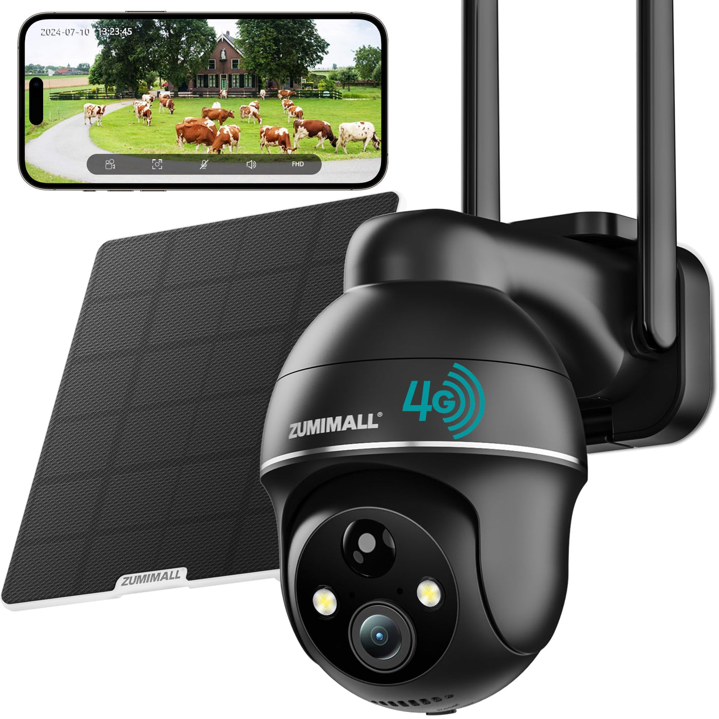 Zumimall 4G Lte Cellular Solar Security Camera Outdoor, 2K No Wifi Security Camera Solar Powered With Color Night Vision, 2 Way Talk, Motion Alert, Cloud, Sim Included(Us Version)