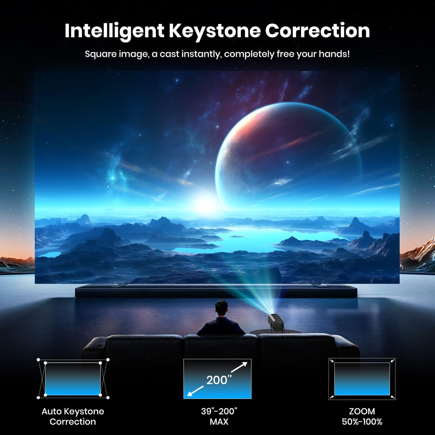 Q: What are the key features of the AGIMA X3 Smart Projector?A: The AGIMA X3 Smart Projector features native 1080P resolution with 4K support, built-in Android TV OS for easy access to streaming apps like YouTube and Netflix, the latest WiFi 6 and Bluetooth 5.2 for smooth connectivity, automatic keystone correction for perfect image alignment, and a wide range of compatibility options including HDMI, USB, and mobile devices.