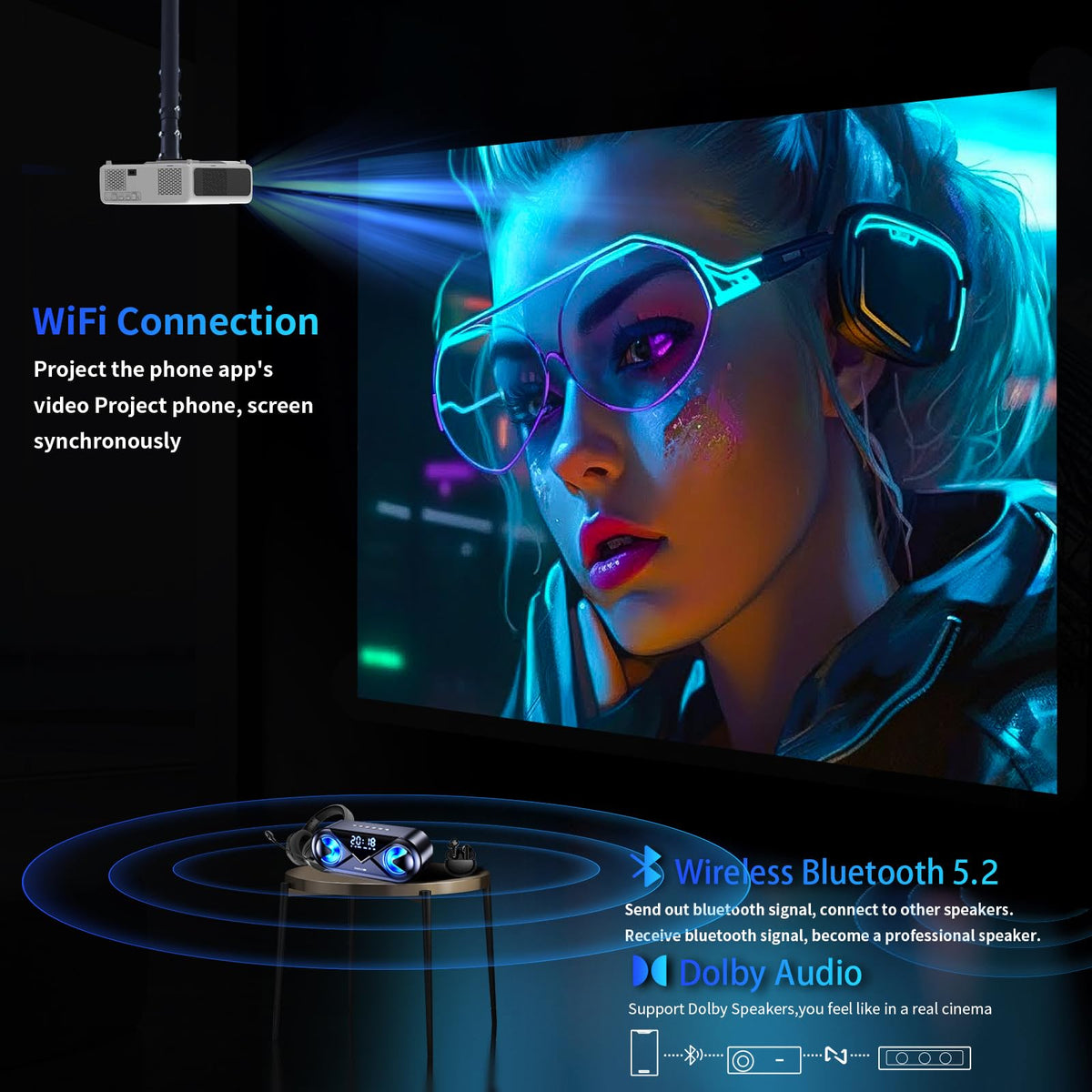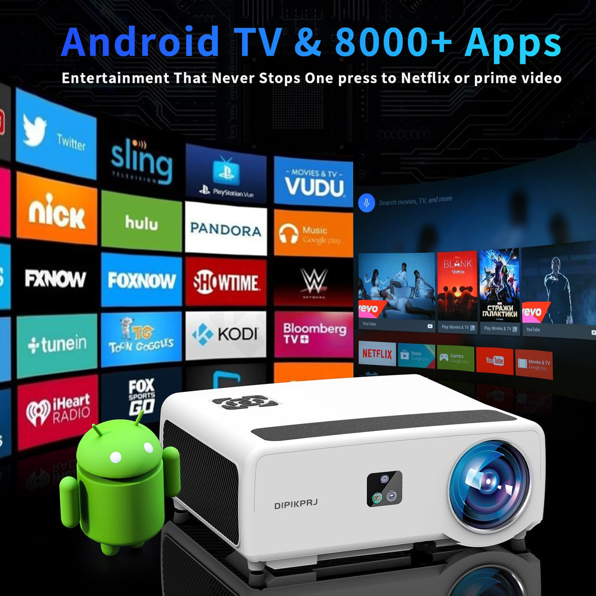 [Auto Focus & Keystone] Android Tv 4K Projector With Prime Video Bulit-In,1300Ansi Lumens Home Movie Outdoor Projector 4K+ With Wifi 6 And Bluetooth,50% Zoom & 500''Dispaly,8000+ Apps,Dust-Proof