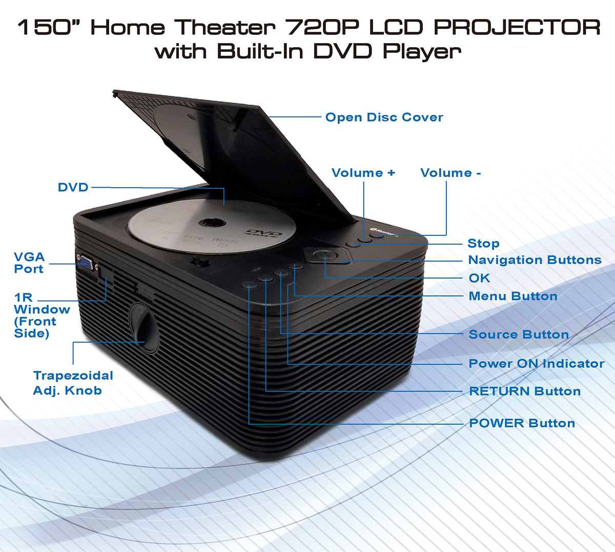 Naxa Nvp 2500 150 Inch Home Theater 720P Lcd Projector With Built In Dvd Player And Bluetooth