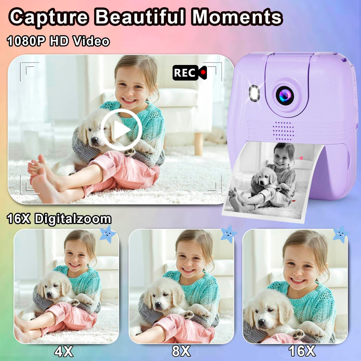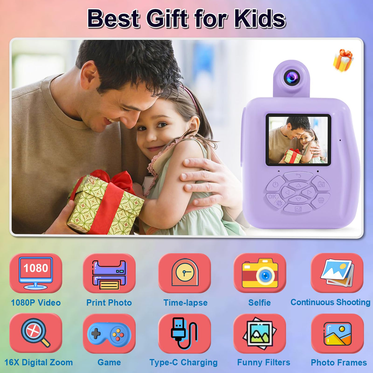 Instant Camera For Kids: This Kids Camera Is Both A Digital Camera And An Instant Camera; It Uses Thermal Printing Technology, No Toner Is Required And Printing Is Easy. With Just One Click, Kids Can Freeze Photos And Capture Beautiful Moments Anytime, Anywhere!