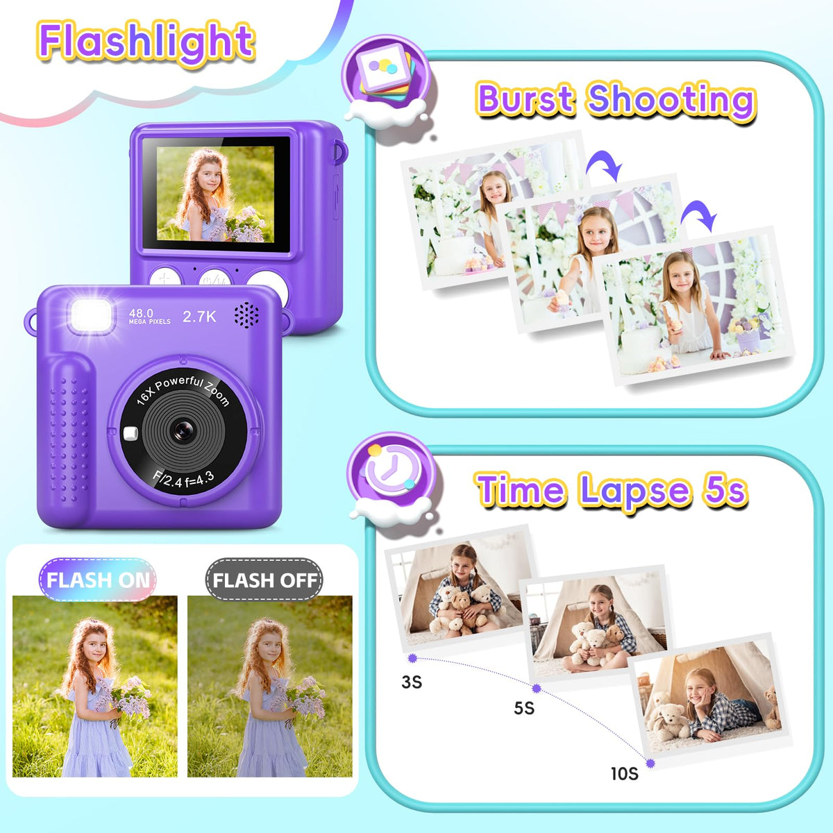 Greenkinder Kids Camera Instant Print, Christmas Birthday Gifts For Boys Girls Age 3 12, 2.4 Inch/1080P Kids Digital Cameras, Po