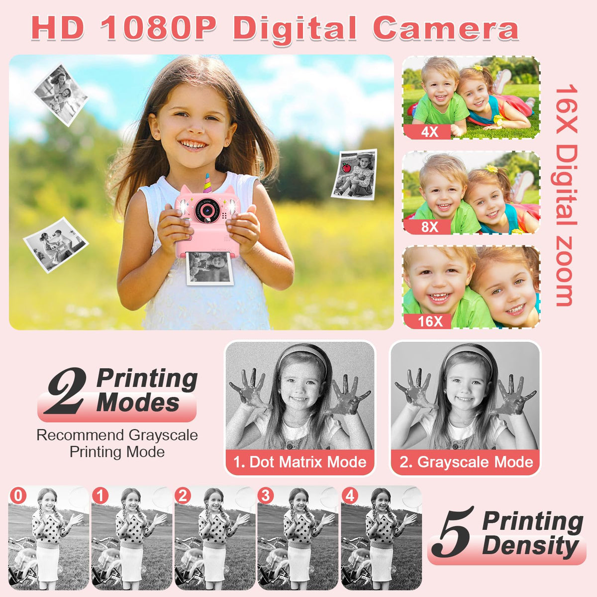 Cartoon Soft Silicone Cover Instant Print Camera For Kids. This Is A Great Gift For Children Ages 3-8, Especially Girls Ages 6-8 And 4 Year Olds. It'S Also An Excellent Choice For Toddler Toys For Ages 5-7 And 6 Year Old Girls. The Instant Print Camera For Kids Is The Best Birthday Or Christmas Gift For Both Boys And Girls Aged 3-12. It'S An Ideal Toy For Toddlers And Kids Who Love Digital Video, Selfies, And Printing Photos. 2.4Inch Large Screen, This Color Camcorder Comes In Mini, Diy, Portable Printer Paper Sizes And Allows You To Shoot Pictures Instantly. It'S A Child-Friendly Camcorder That Can Take Small Photos In Black, And White. The Instaprint Photography Is Perfect For Little Ones Who Want To Capture Their Memories Instantly. It'S A Real Disposable Instacam That Provides Instantanea Fotografica De Para Kids.