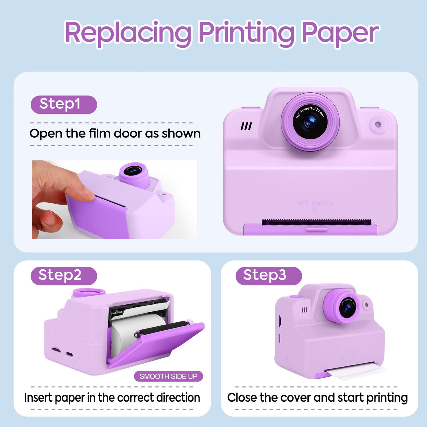 Instant Print Camera For Kids, Toddler Kids Camera Instant Print For 3 4 5 6 7 8 9 10 Years Old Girl Christmas Birthday Gifts, P