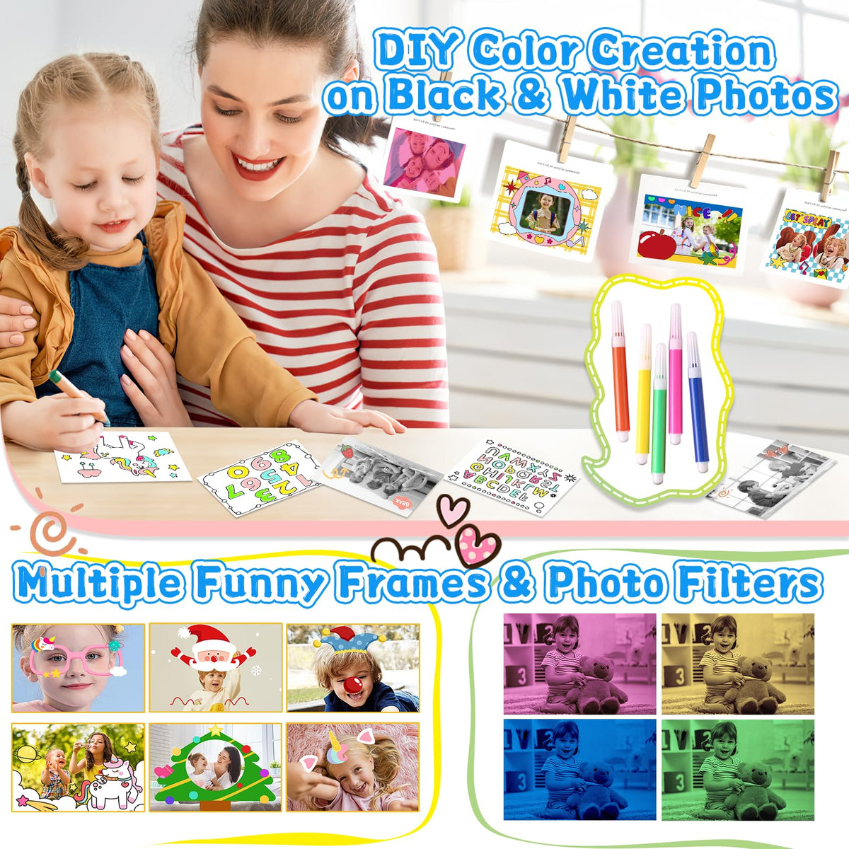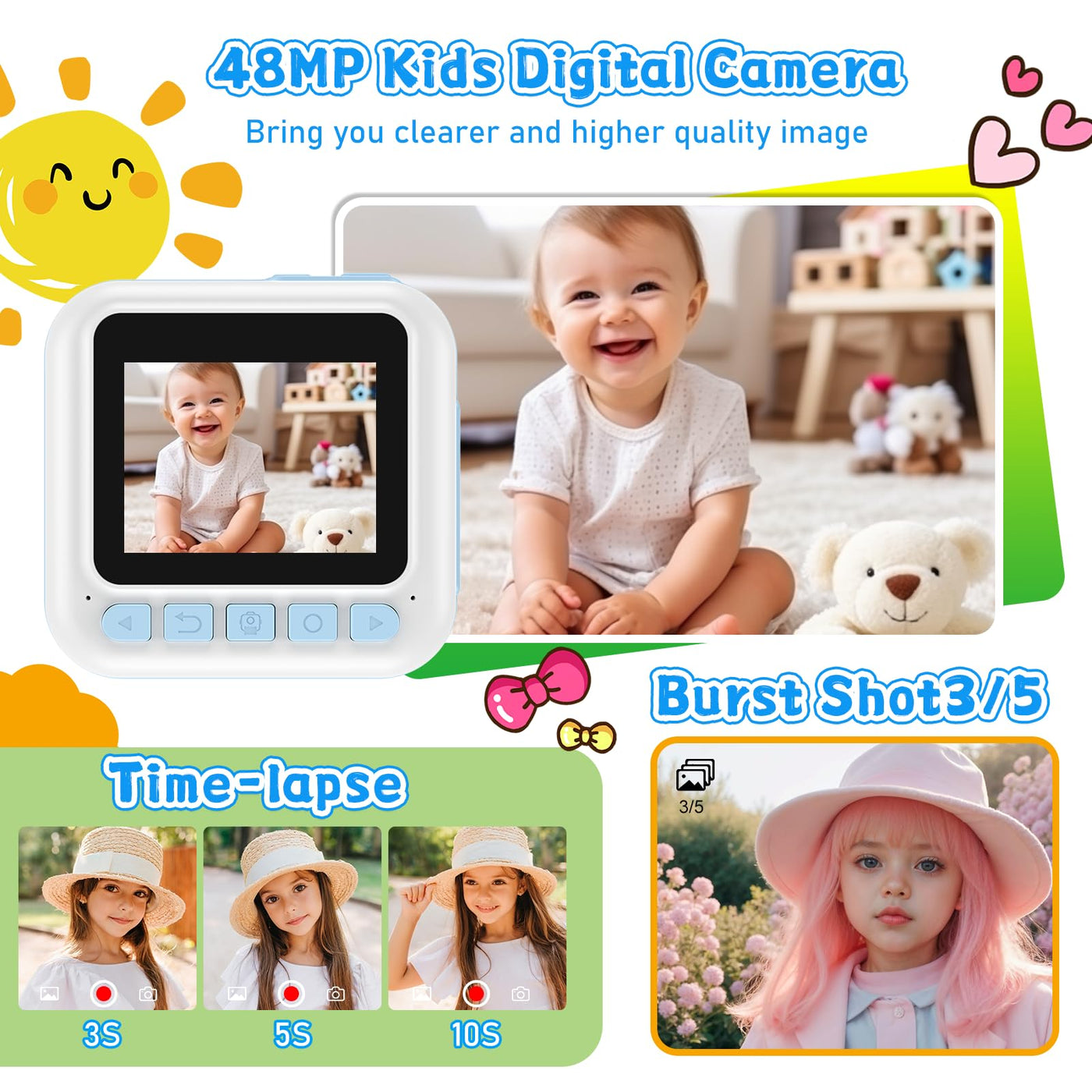 2.4 Inch Screen Instant Print Camera For Kids, Rich Features, Easy To Use. Come With 4 Puzzle Games, Mp3 Music Player, Flash, 32G Sd Card, 3 Print Paper Rolls, Support Video Recording, Playback, Multi-Language, Print Photos, Etc. Multi-Function Toddler Camera, Is Specially Designed For Kids Aged 3-12. Hd Children Digital Camera,1080P Video Camera, Support Time-Lapse, Burst Shot, Etc, 16X Digital Zoom, Capture Moments And Document Your Child'S Good Times. Lots Of Photo Frames Effects, Bring More Photo Fun To Your Kids. Kids Camera Instant Print, Portable Toys Camera, Toddler Toys, Popular Kids Toy For Girls Boys Age 3-12, Great Kids Christmas Birthday Gift Travel Holiday Gifts, 4 5 6 7 8 9 10 11 12 Year Old Girls Boys Gifts.