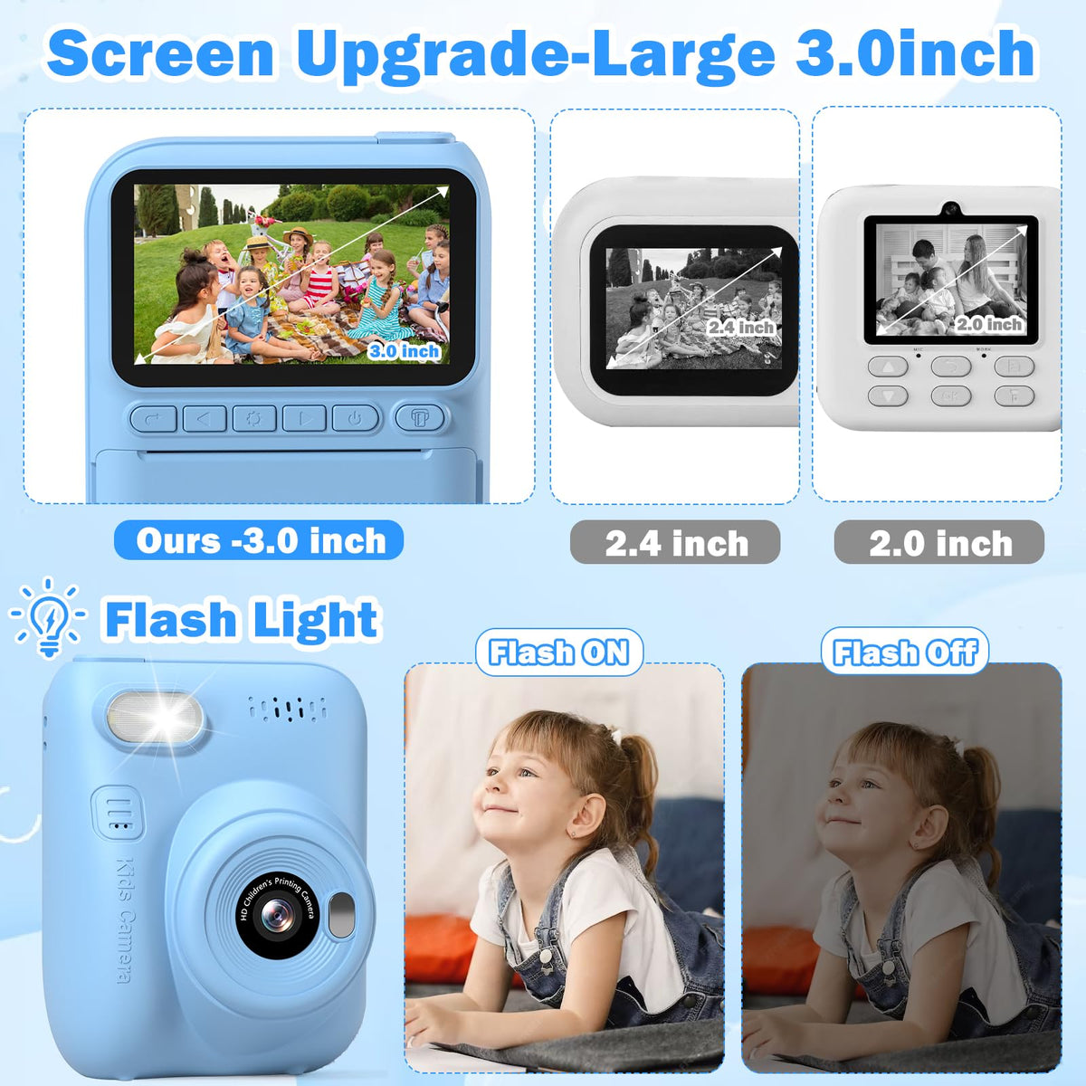 Kids Camera Instant Print, 3.0 Inch Hd Screen, Toddler Camera With Printing Paper, 1080P Video Kids Digital Camera, Birthday Gif