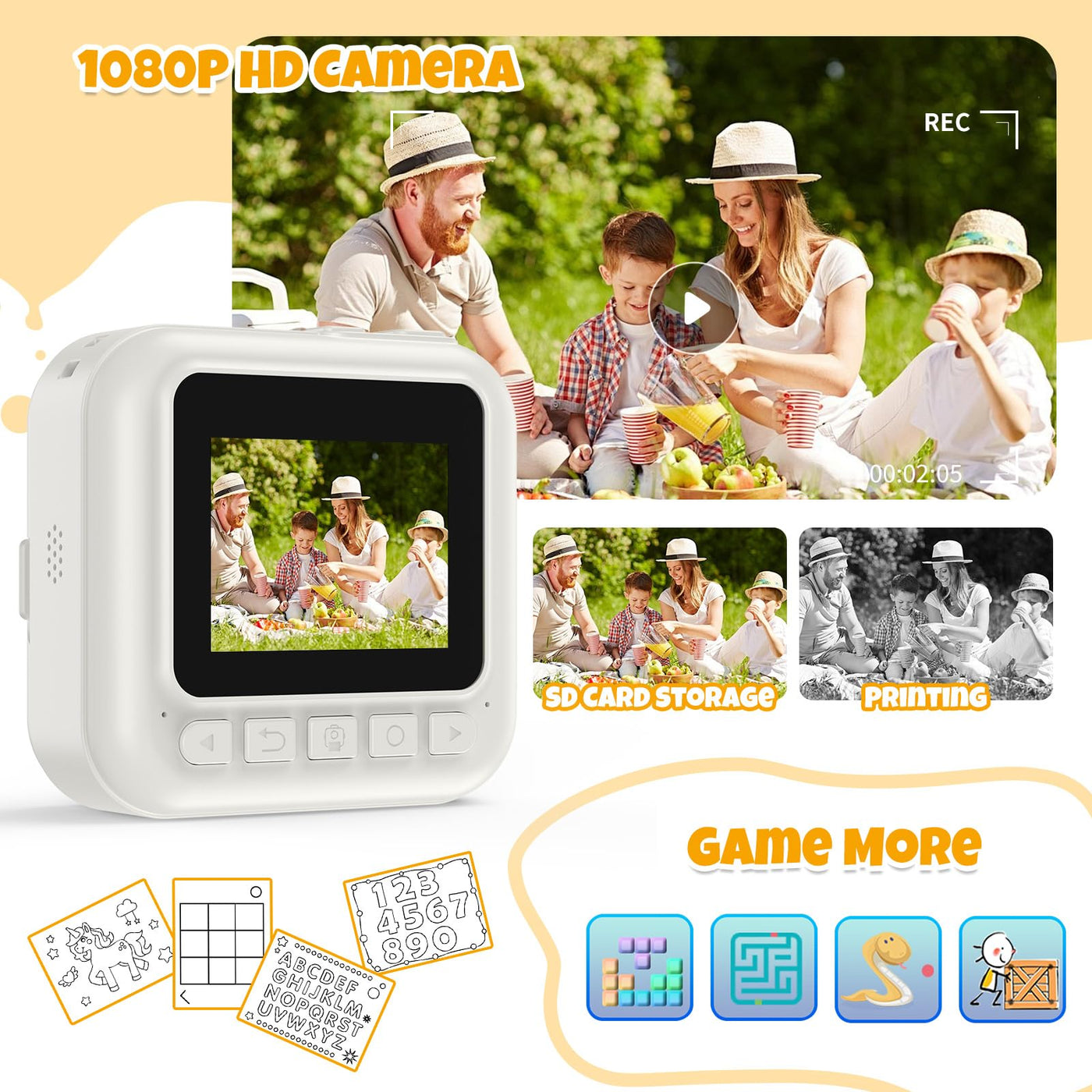 Kids Camera Instant Print Birthday Gifts For Girls Age 3 8, Toddler Camera Travel Selfie Video Camera Toys Instant Printing Came