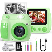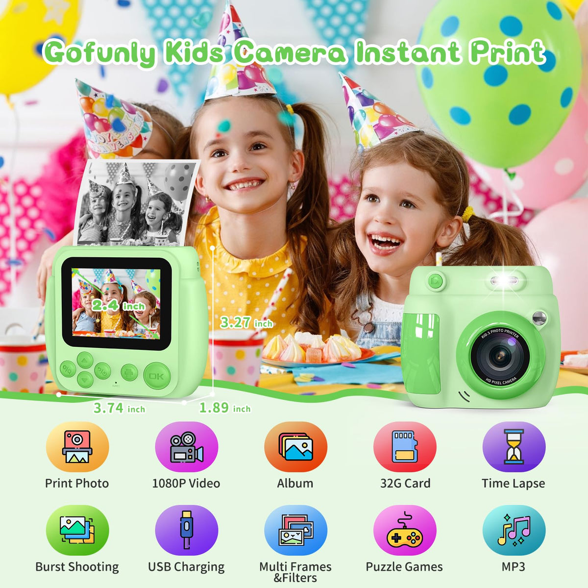 Kids Camera Instant Print, Birthday Gifts For Girls Boys With 3 Rolls Print Paper & 32Gb Card, 48Mp Toddler Digital Camera 1080P Hd Video Toys Camera For Kids 3-12, Green