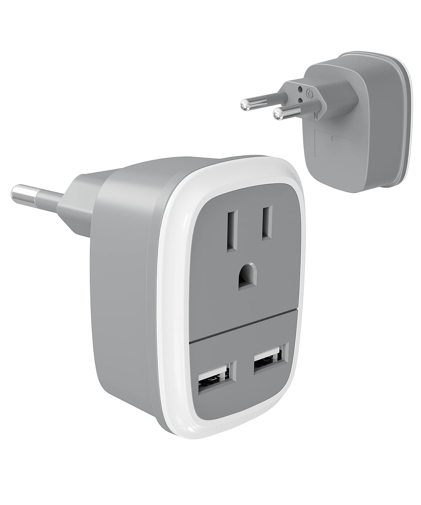 &Bull; Package Includes 1 Pack Us To Eu Travel Plug Adapter&Bull; 3 In 1 Input: 1 Standard N American 2 And/Or 3 Prong Flat Pin Plug, And 2 Usb Port&Bull; Compatible In Most European Countries: Such As France, Germany, Italy, Greece, Iceland, Switzerland, Austria, Spain, Denmark And Others Such As Israel, South Korea, India ( Not Compatible In Uk)&Bull; Small, Compact And Lightweight Adaptor Is Perfect For Travel. Fit Tight To Your Devices And Won&Apos;T Fall Out.&Bull; Multi-Purpose Usage: Quality Electric Adapter Plugs Can Be Used To Charge Smartphones, Power Banks, Bluetooth Speakers, Laptops, Tablets And Etc. (This Product Does Not Convert Voltage From 110 To 220 Or Vice Versa)