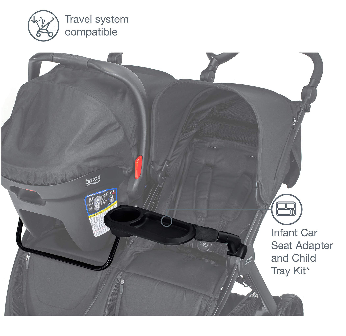 Britax B-Lively Double Stroller Infant Car Seat Adapter & Child Tray Kit