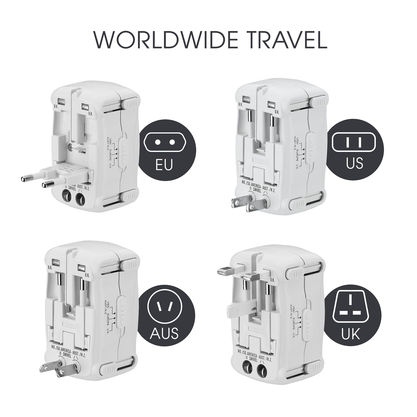 Conair Universal Travel Adapter, European Travel Plug Adapter With Surge Protection, All In One Worldwide Travel Adapter