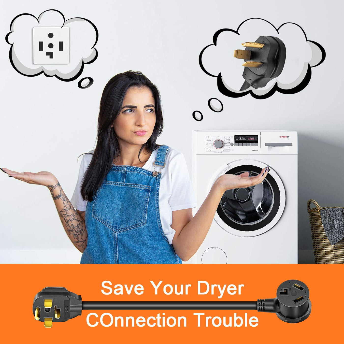 When You Move Into A New Apartment Or House That Has The 4 Prong Outlet While Your Dryer Is With 3 Prong Plug, Please Consider This Plug.Important Note: The 4 Prong Plug Of This Converter Plug Into Household Outlet, The End 3 Prong Socket Of This Converter Connects To Your Dryer Plug. Please Refer To The Picture Carefully.Easily Connects Your 3 Prong Dryer To 4 Prong Home Outlet.We Focus On Producing Power Cord And Molding Nema Plug Or Connector.Most Of Generally Use Nema Plugs And Receptacles We Can Manufacture With Pvc Cable.We Have Ul Approved For All Pvc Wire In Ul 62 Standard, And Also Have Ul Or Etl Approved For Most Of Connectors In Ul 817 Standard.