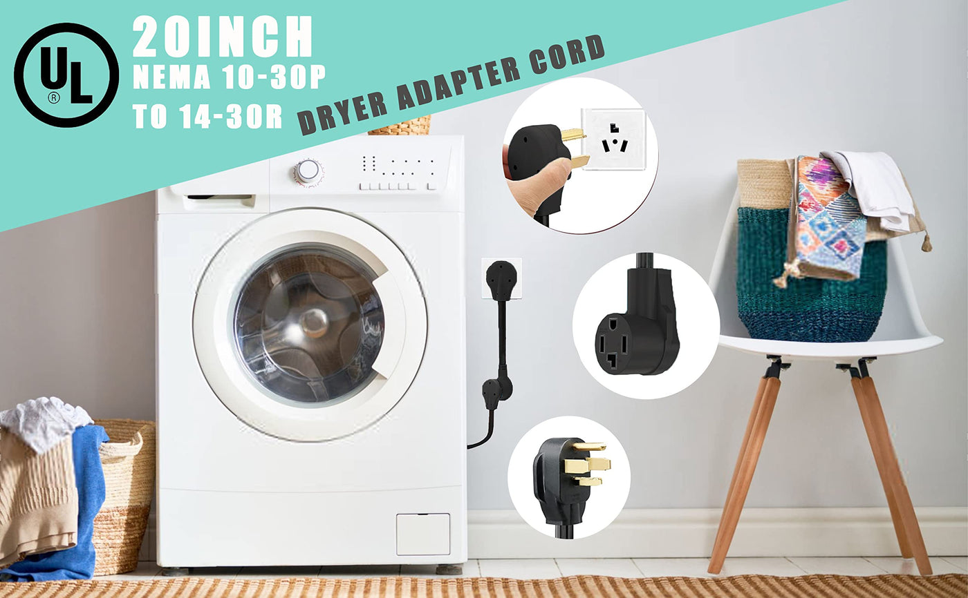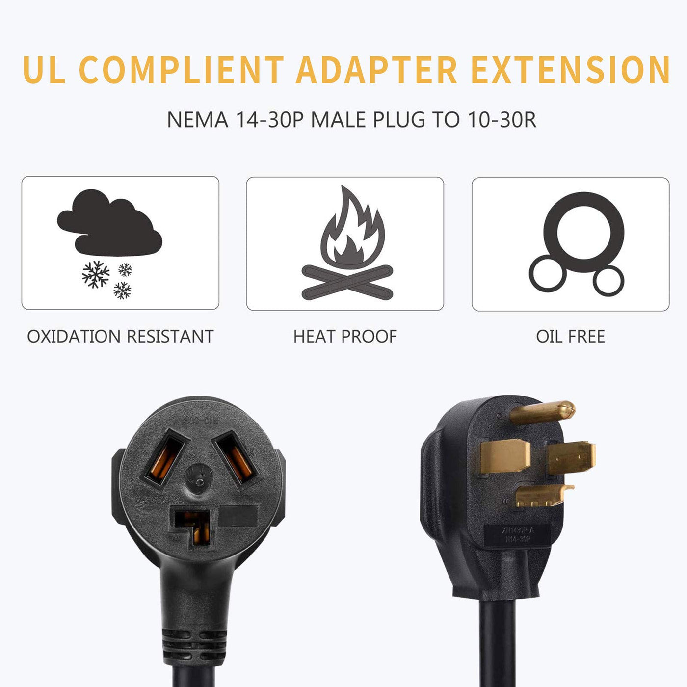 Dryer Plug Adapter 3 To 4 Prong Outlet,Connects 3-Prong Old Dryer To 4 Prong New Dryer Receptacle,30A 125/250V 10Awg Nema 14-30P