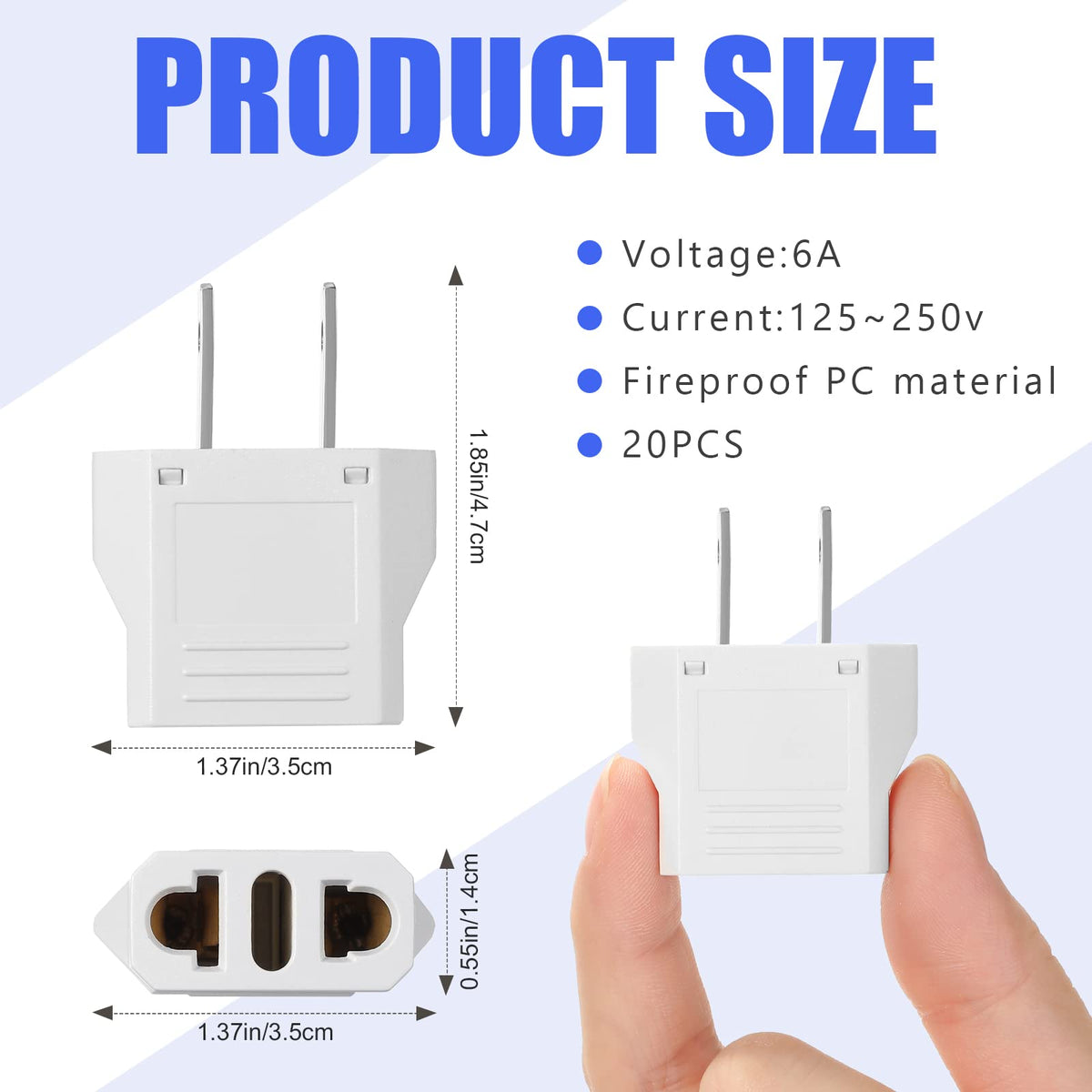 Features: Thoughtful Gift: The Us Charger Adapter Is A Practical Gift Idea For People Who Traveling From Europe To Us. You Can Give Them To Your Family Or Partners During The Holidays. Warm Tips: Our Voltage Adapter Europe To Us Do Not Convert Power And Voltage, If You Want To Use Other Appliances, Please Ensure That They Are Within The Appropriate Voltage Range Specifications: Material: Copper, Pc Color: White Size: As The Picture Shown Package Includes: 20 X Europe To Us Plug Adapters Notes: Manual Measurement, Please Allow Slight Errors On Size. The Color May Exist A Slight Difference Due To Different Screen Displays.