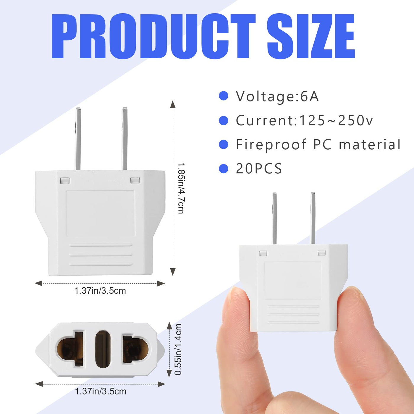 Q: How many plug adapters are included in the package?A: The package includes 20 pieces of Europe to USA plug adapters, providing ample supply for personal use or sharing with friends and family.