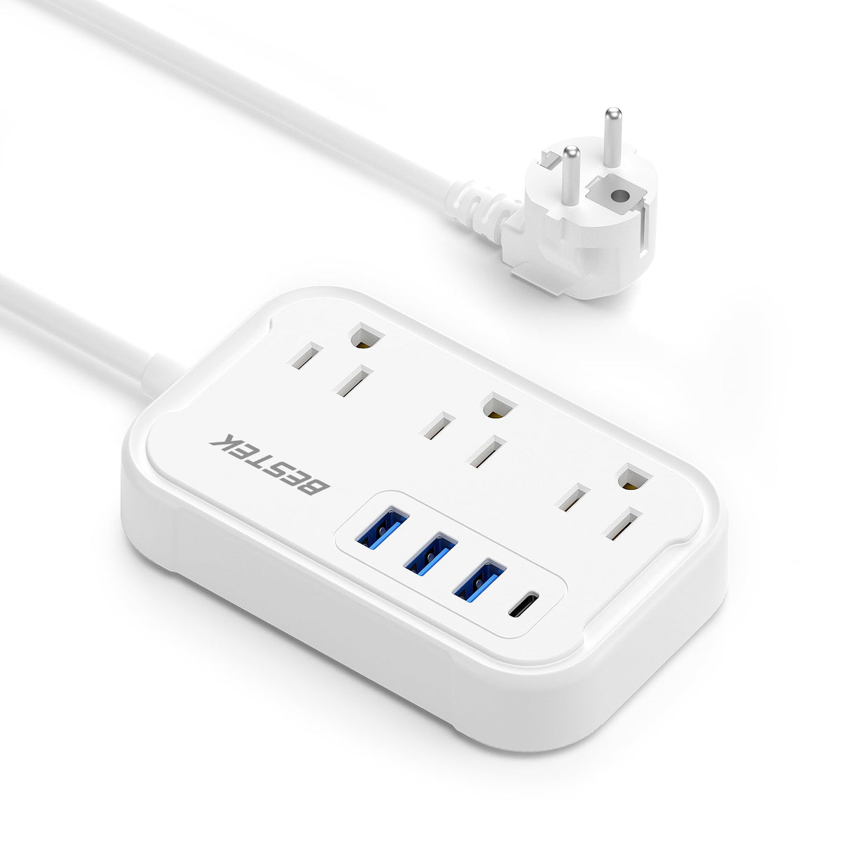 European Travel Plug Adapter Us To Europe Plug Adapter With 3 Ac Outlets And 4 Usb(1 Pd20W) Type E/F International Travel Ad