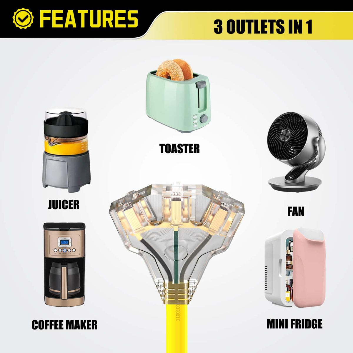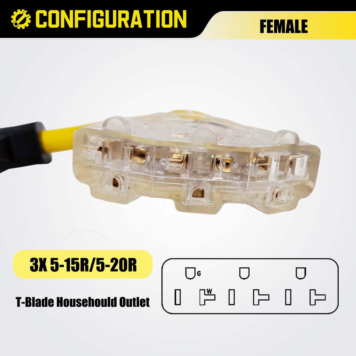 Lavandino 3 Prong 220 To 110 Adapter Plug, Nema 10-50P To 5-15R/5-20R Tri-Outlets Converter For Stove, Oven, Gas Range Adapter