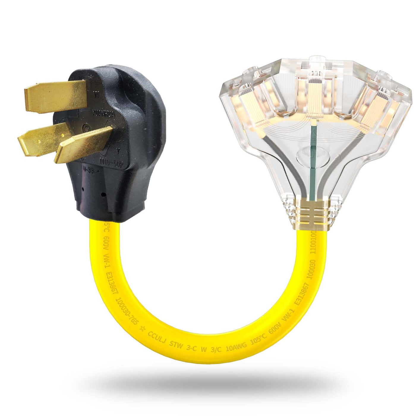 Lavandino 3 Prong 220 To 110 Adapter Plug, Nema 10 50P To 5 15R/5 20R Tri Outlets Converter For Stove, Oven, Gas Range Adapter