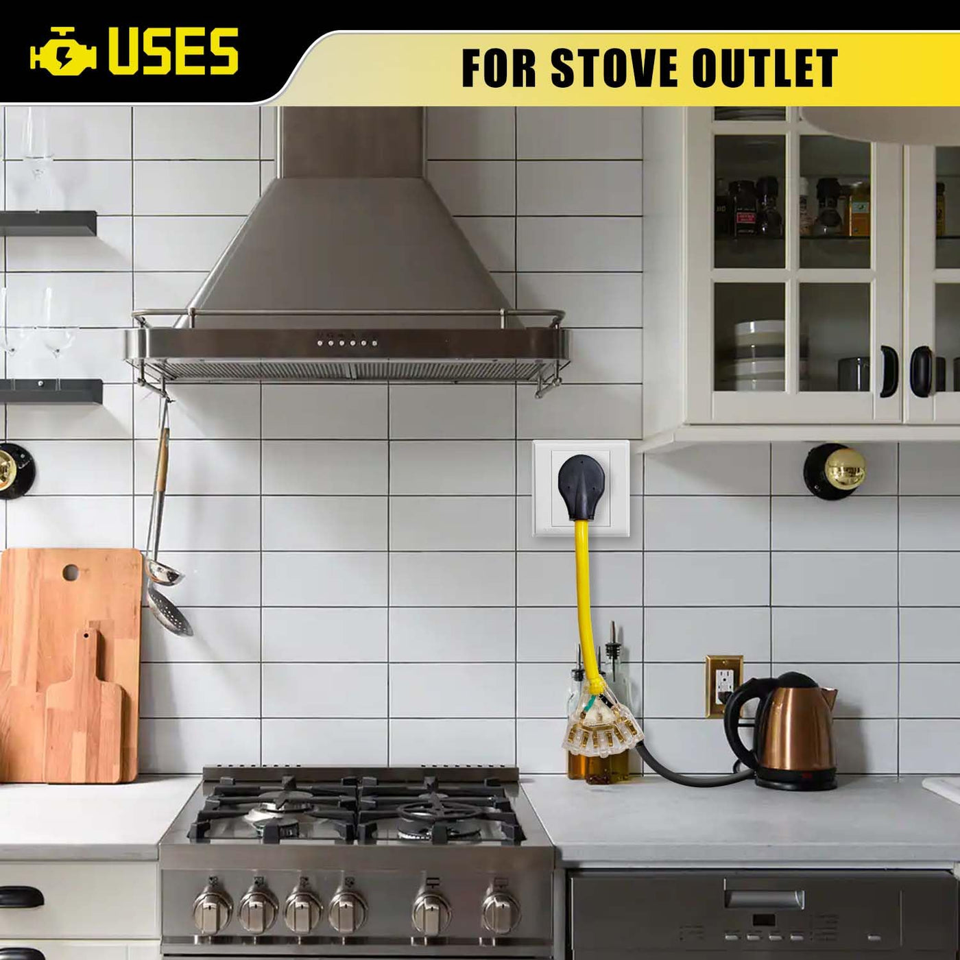 Q: Can I use this adapter for both electric and gas appliances?A: Yes, this adapter allows you to convert your electric range to gas and also enables you to plug in three household appliances into a 50A wall outlet.
