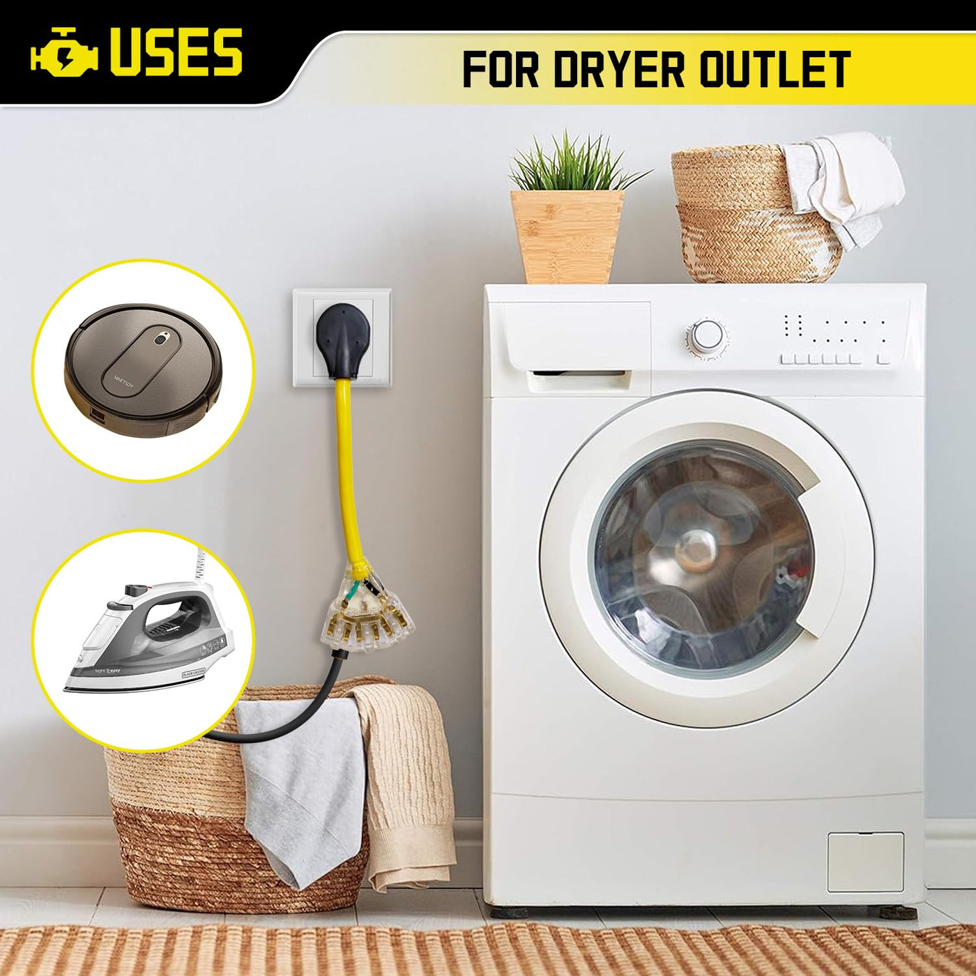 Q: Is the LAVANDINO dryer adapter safe to use?A: Yes, the LAVANDINO dryer adapter is ETL listed, ensuring it meets safety standards for long-term use, allowing you to safely power multiple appliances simultaneously.