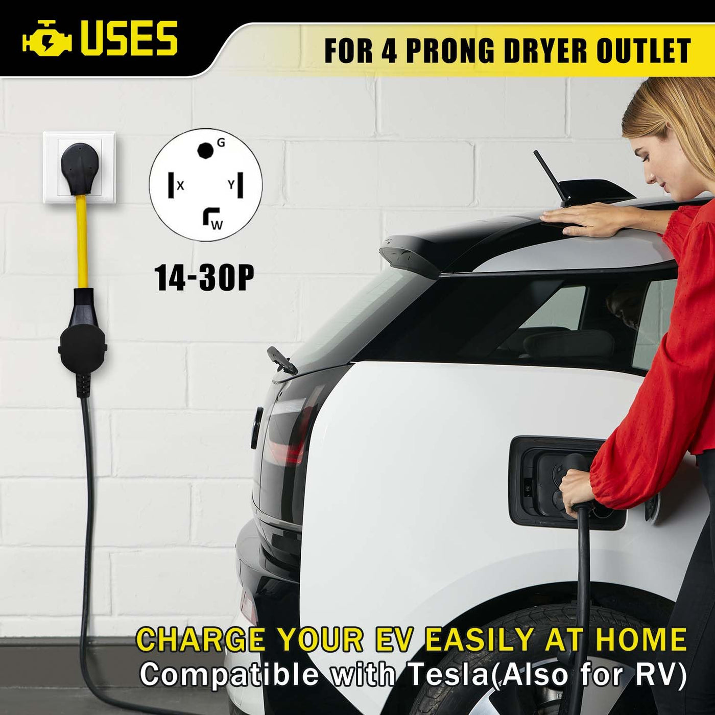 Nema 14-30P To 14-50R Ev Charger Adapter, 220V Dryer Plug Adapter 4 Prong To 4 Prong 30 Amp To 50 Amp, Compatible With Tesla